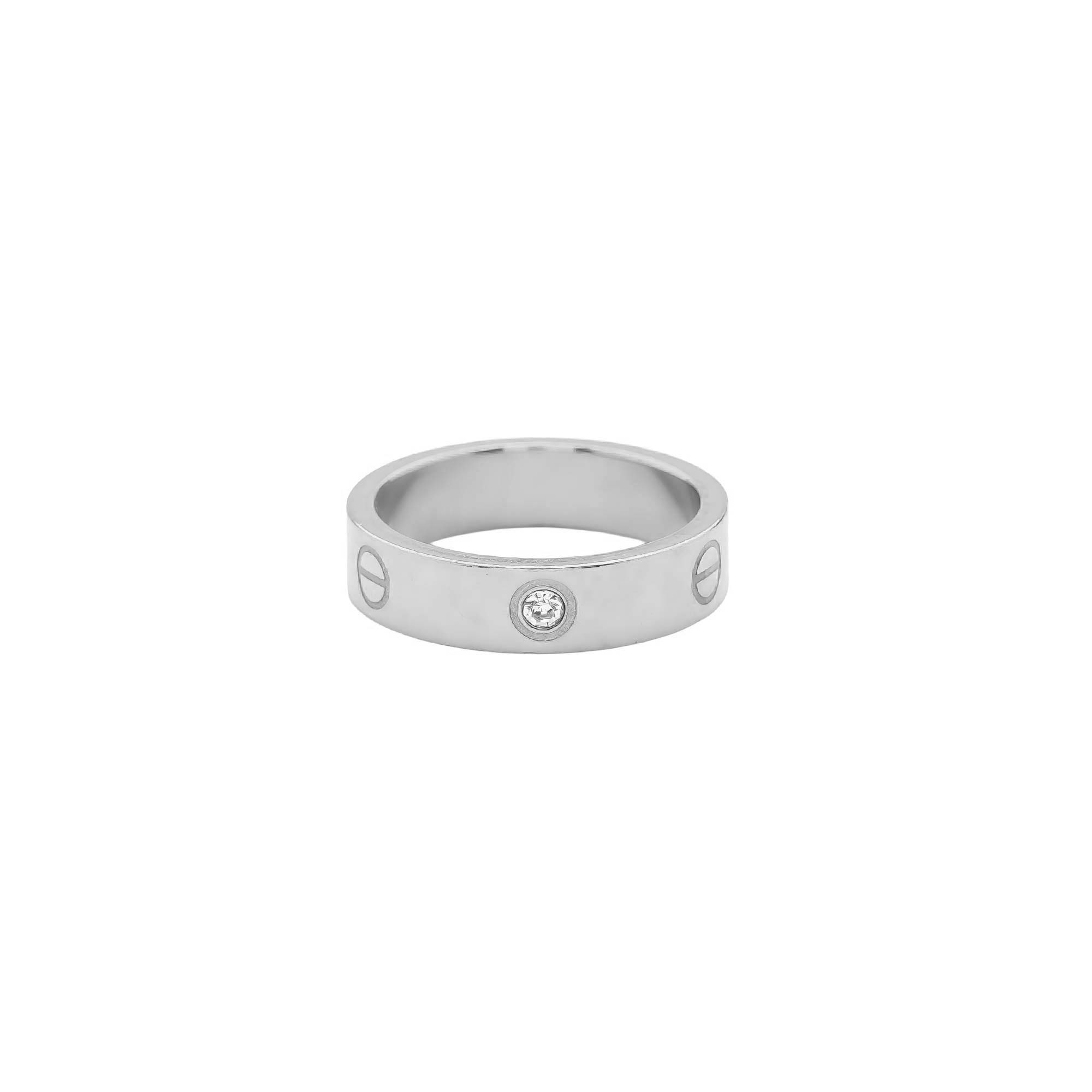 Anillo mítico con estética de tornillos y circonitas, moderno y sofisticado.