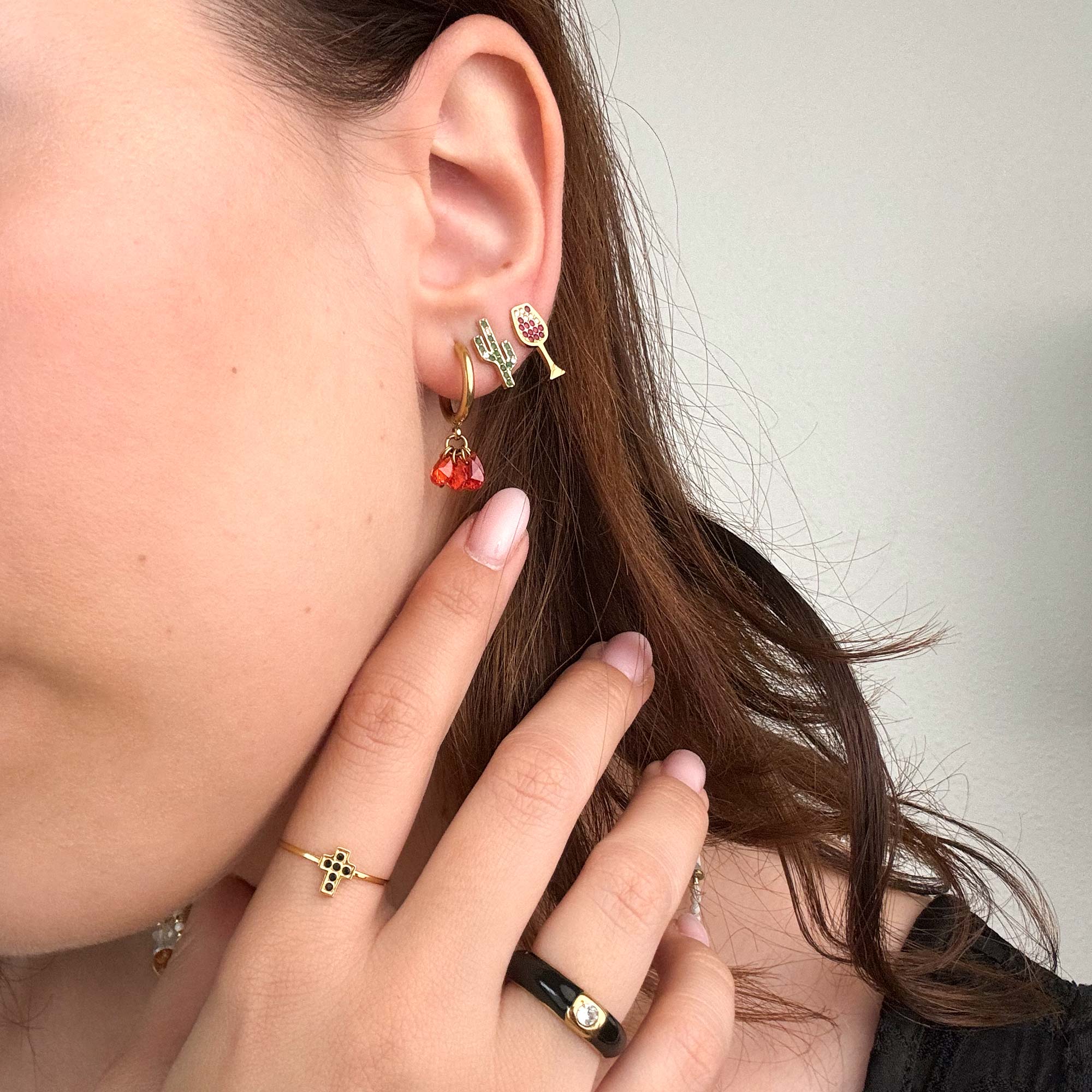 Material: Acero 316L dorado y circonitas negras. Inoxidable e hipoalergénico.