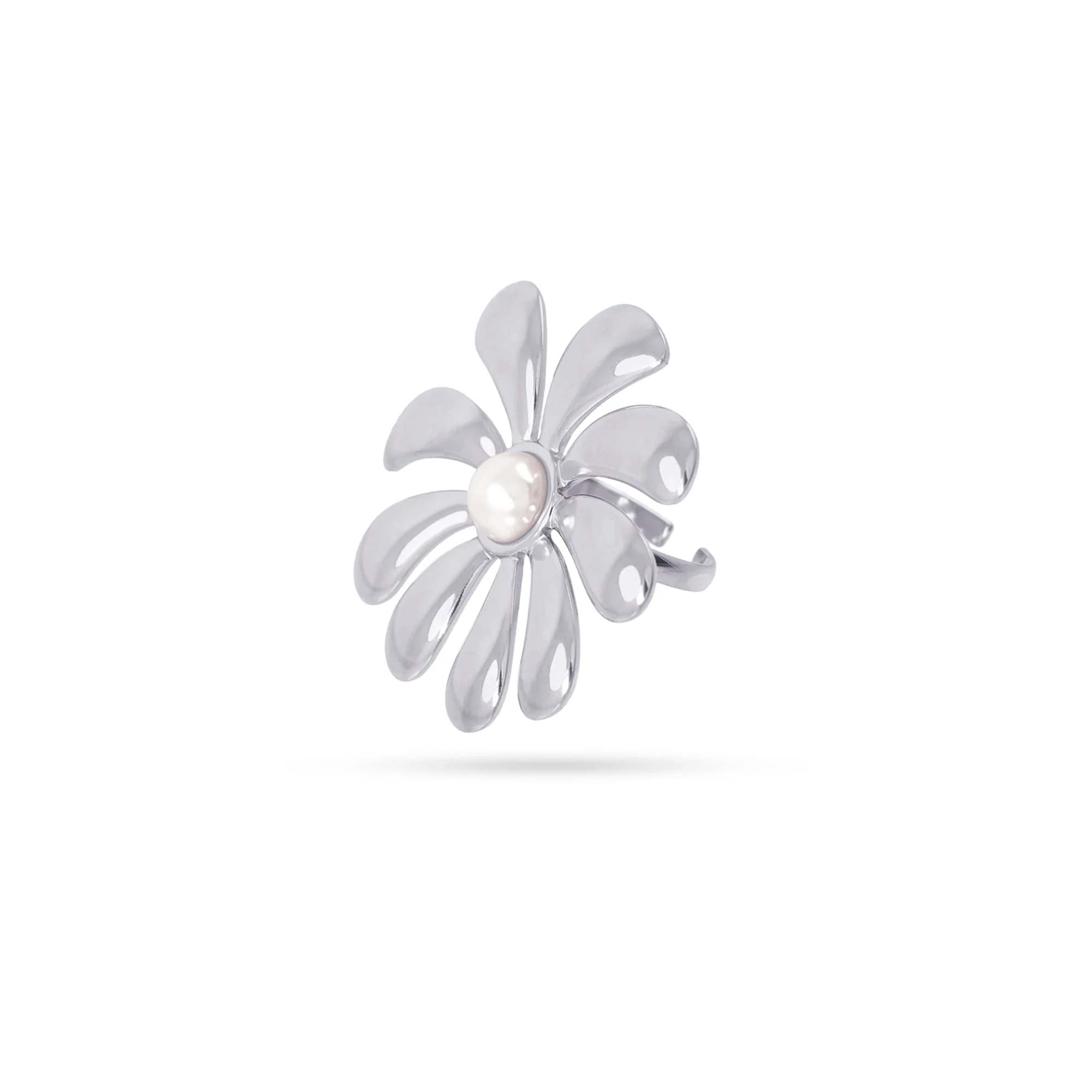 Add to WishlistDeslumbrante anillo con un diseño floral moderno y escultural. Presenta una flor de ocho pétalos curvados y pulidos, en cuyo centro se asienta una delicada perla blanca iridiscente. Su acabado brillante y el contraste con la perla lo convierten en un accesorio llamativo y elegante, perfecto para añadir un toque de frescura y sofisticación a tu mano.