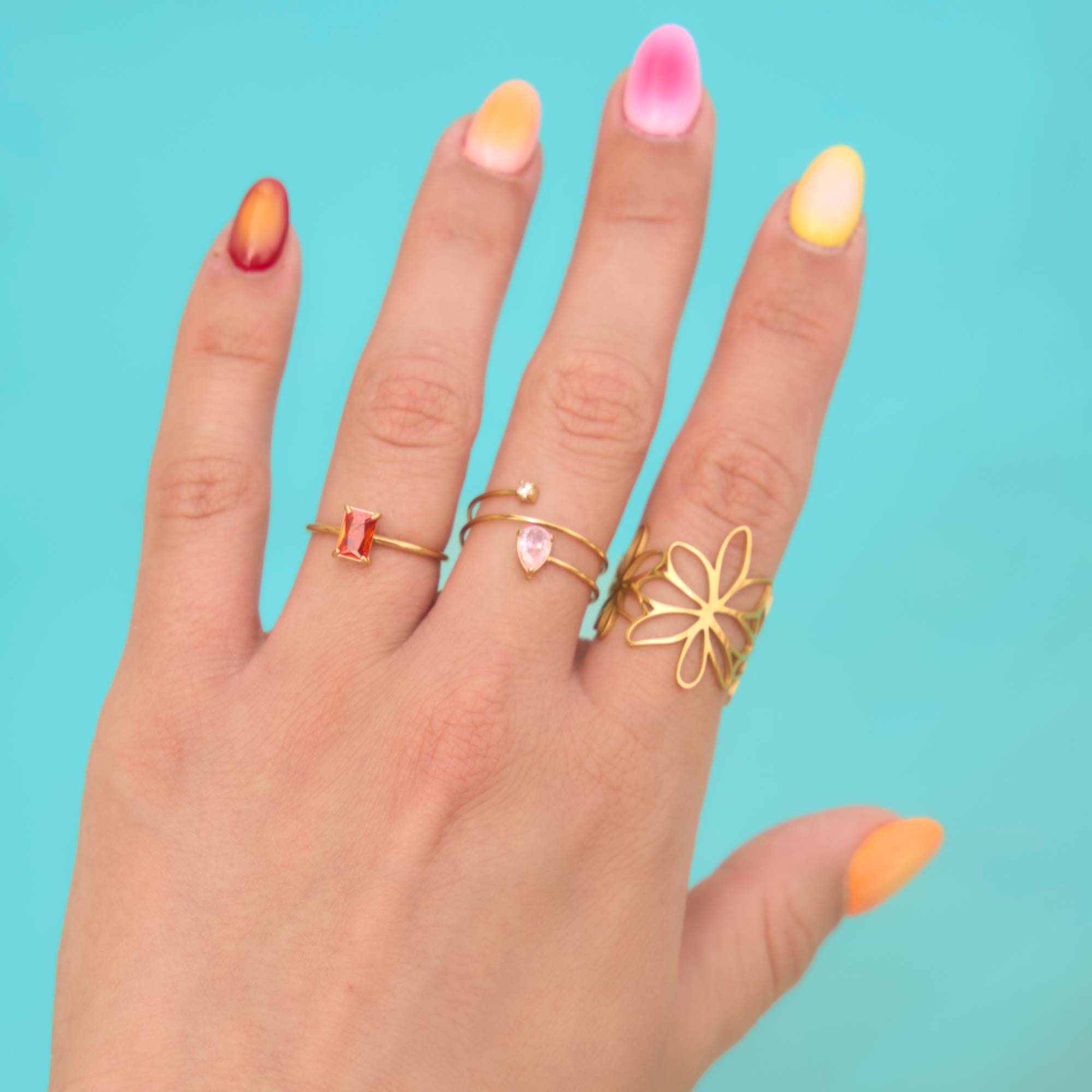 Etiquetas: acero, acero hipoalergenico, acero inoxidable, ajustable, anillo, anillo flores