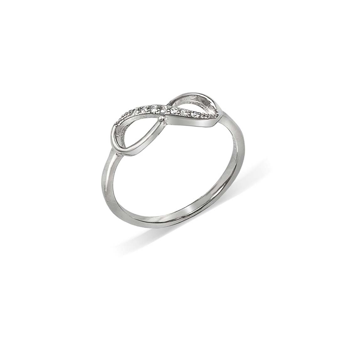 Anillo con símbolo de Infinito decorado con circonitas blancas.
