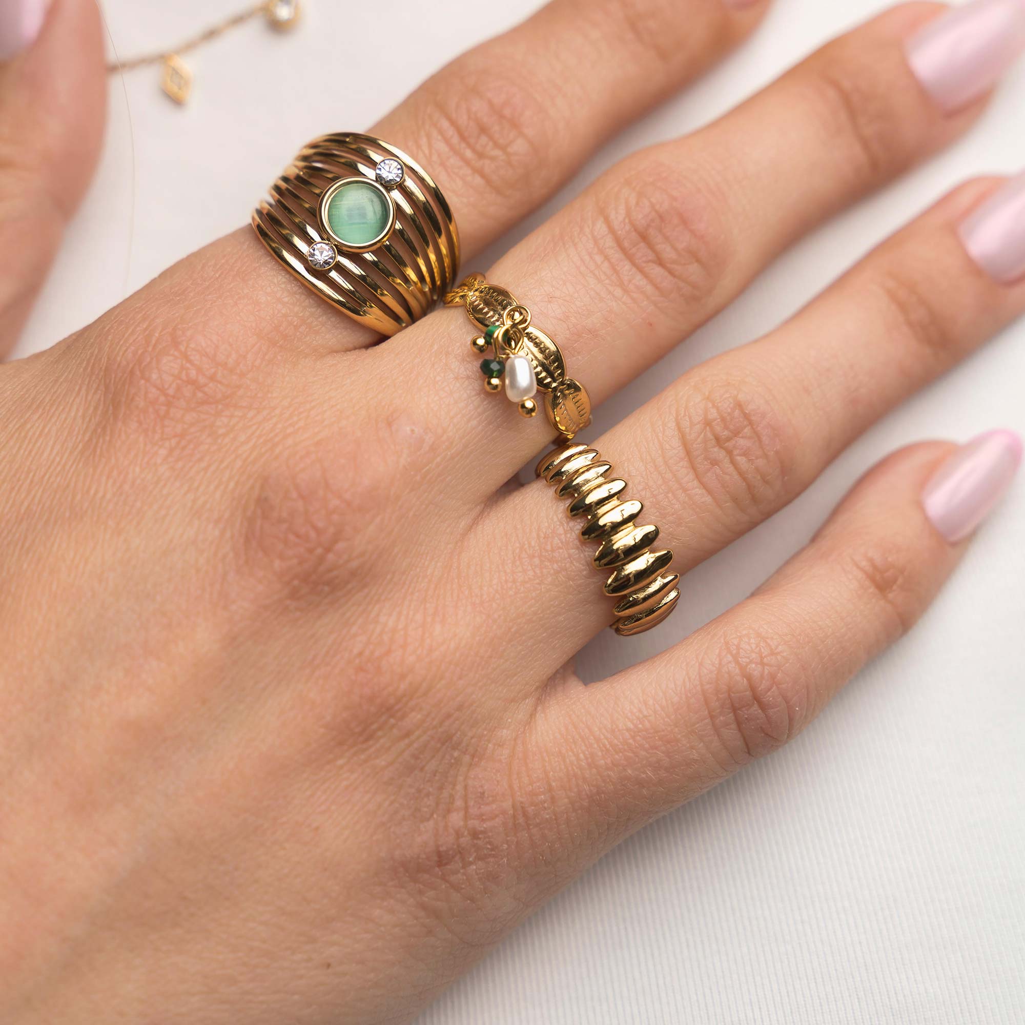 Etiquetas: acero dorado, acero hipoalergenico, acero inoxidable, ajustable, anillo, calcedonia, circonitas, piedra natural