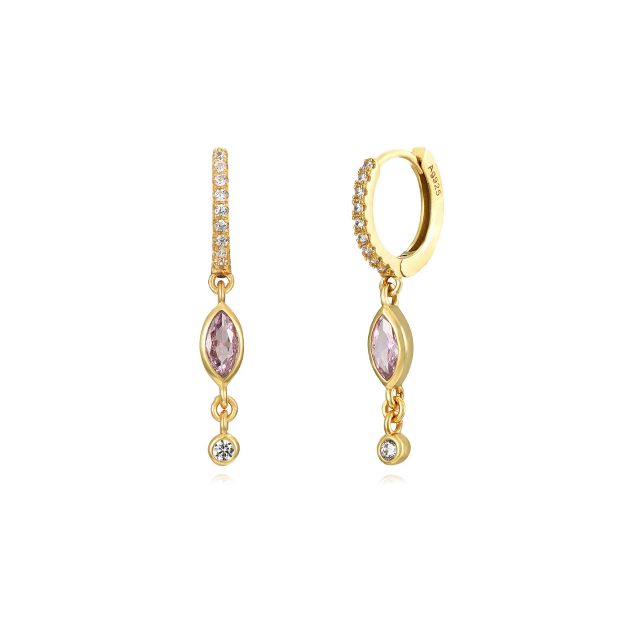 Aro con circonitas con charm de lagrima rosa y circonita. Cierre fácil de clip.