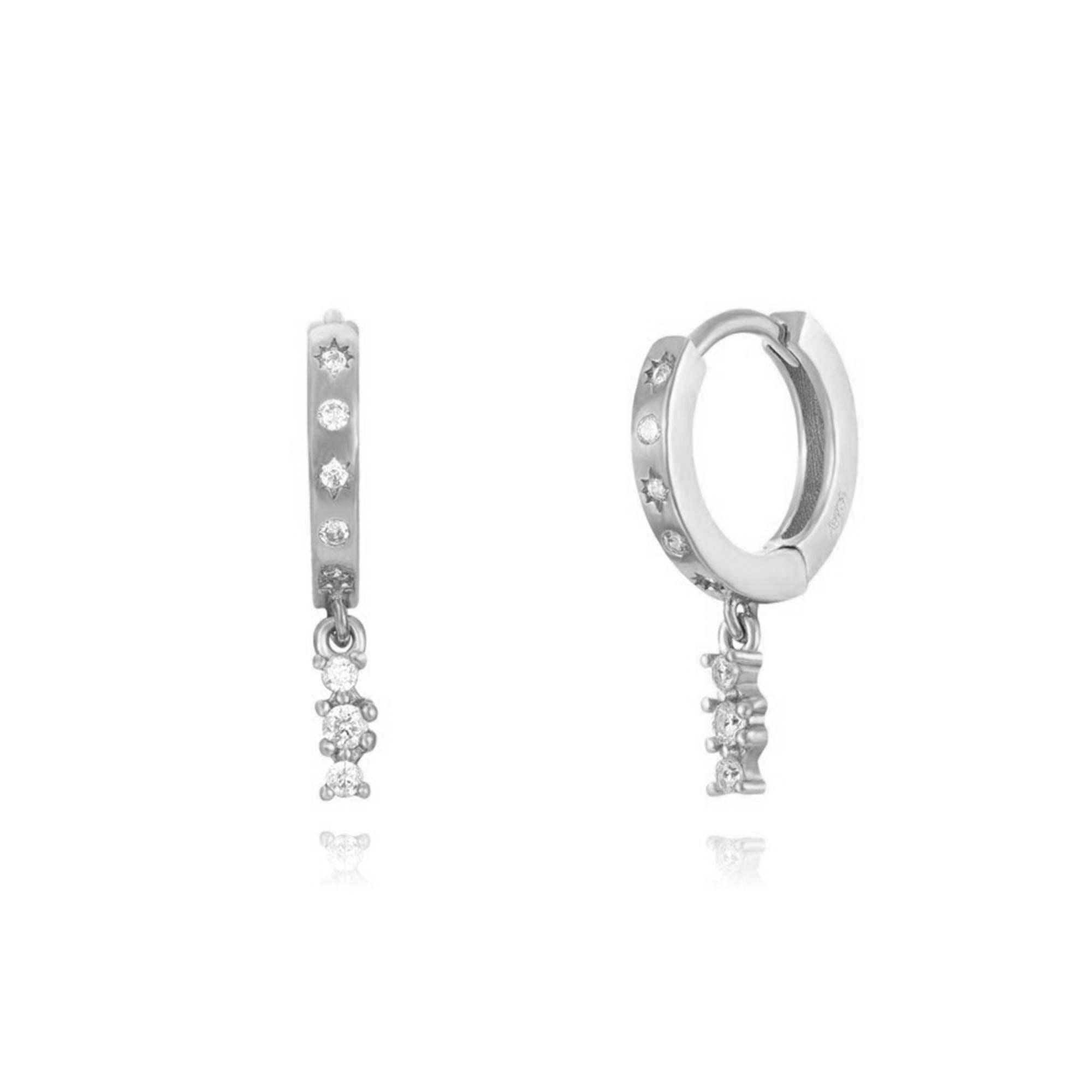 Aro de circonitas y palito de circonitas blancas . Cierre fácil de clip.