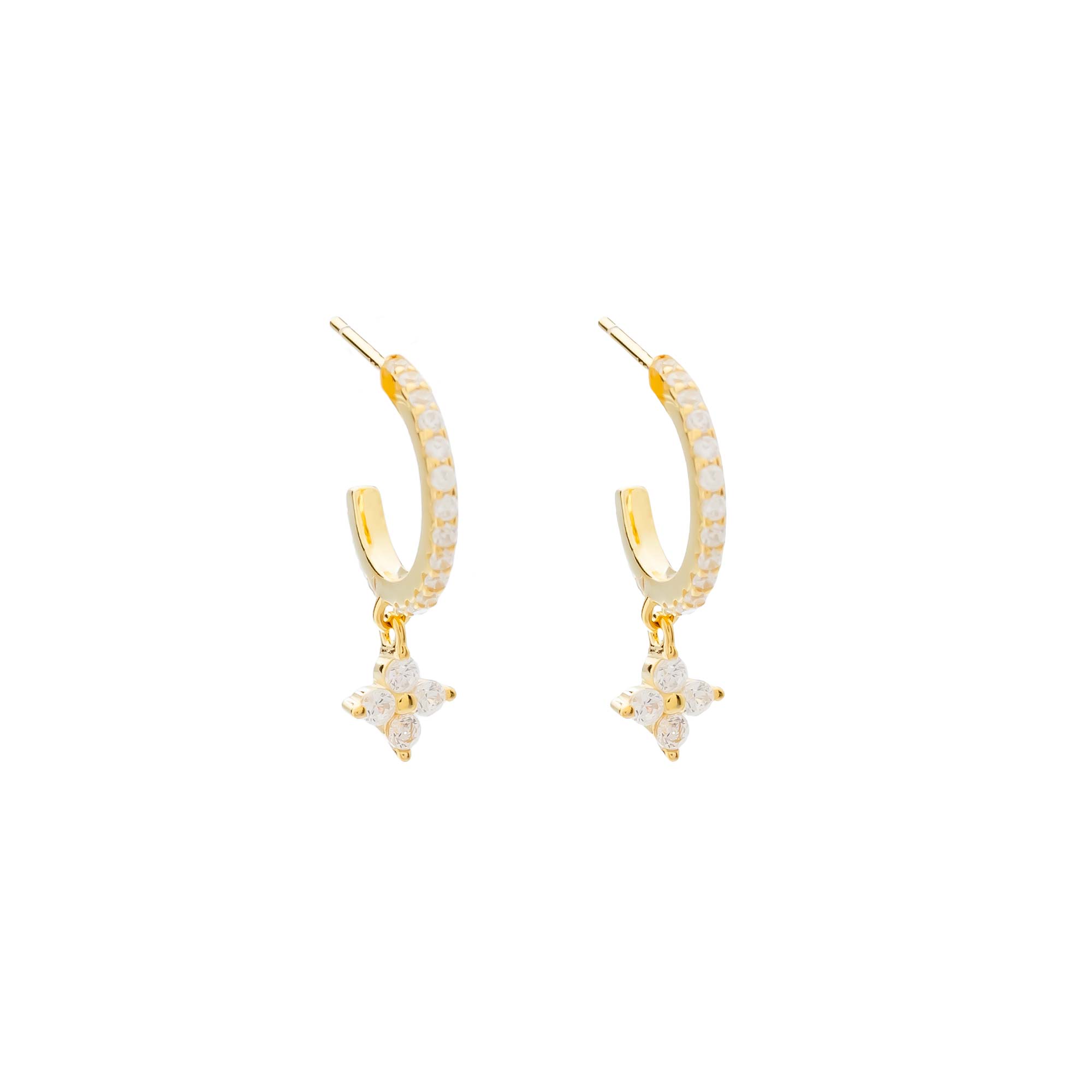 Aros con circonitas y colgante en forma de flor, delicados y elegantes para un toque brillante.