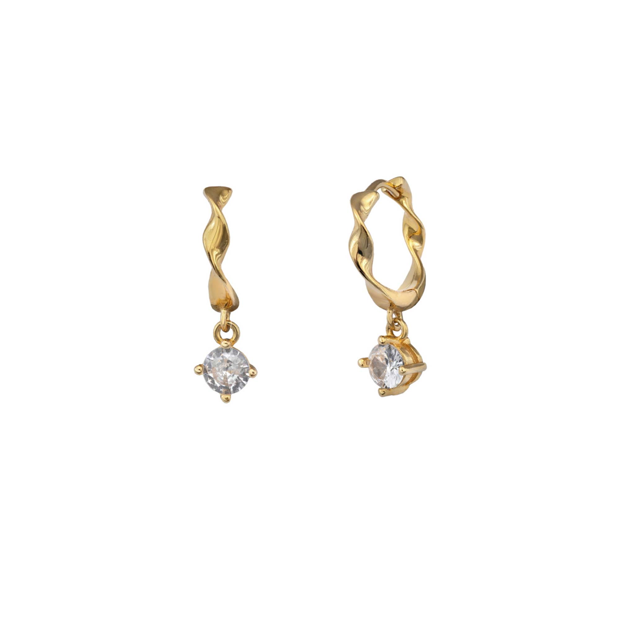 Aros con diseño ondulado y circonita colgante, elegantes y con un toque moderno.