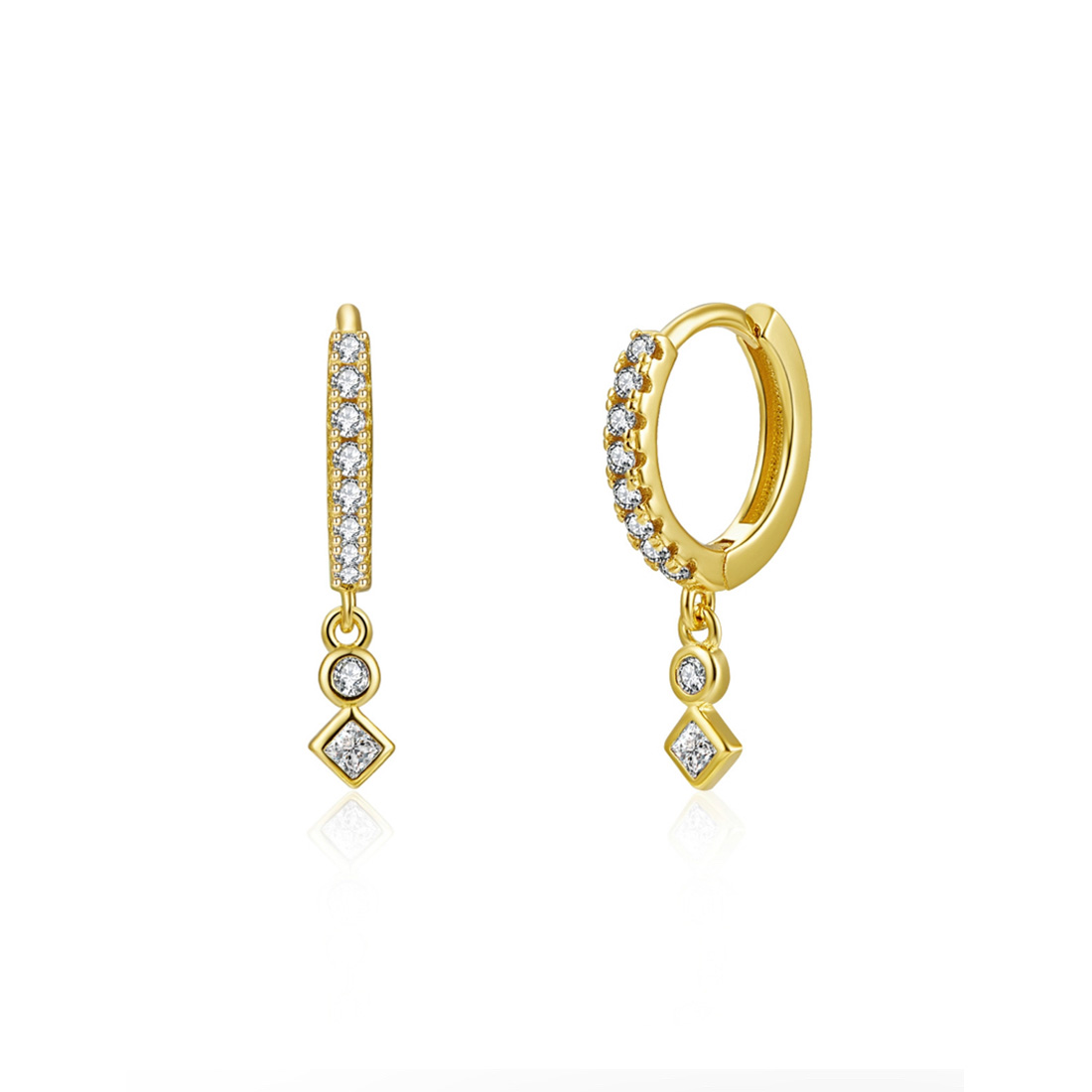 Aros + charm rombo con circonitas blancas. Cierre fácil de clip.