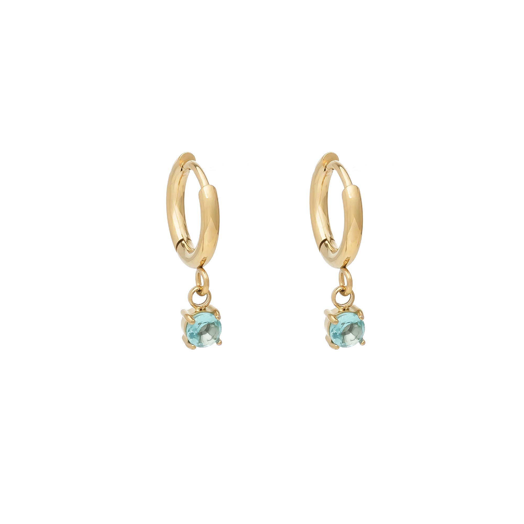 La combinación perfecta de sencillez y encanto. Estos aros con un cristal azul pastel y un acabado dorado aportan luz y un toque delicado. Ideales para un estilo chic y femenino.