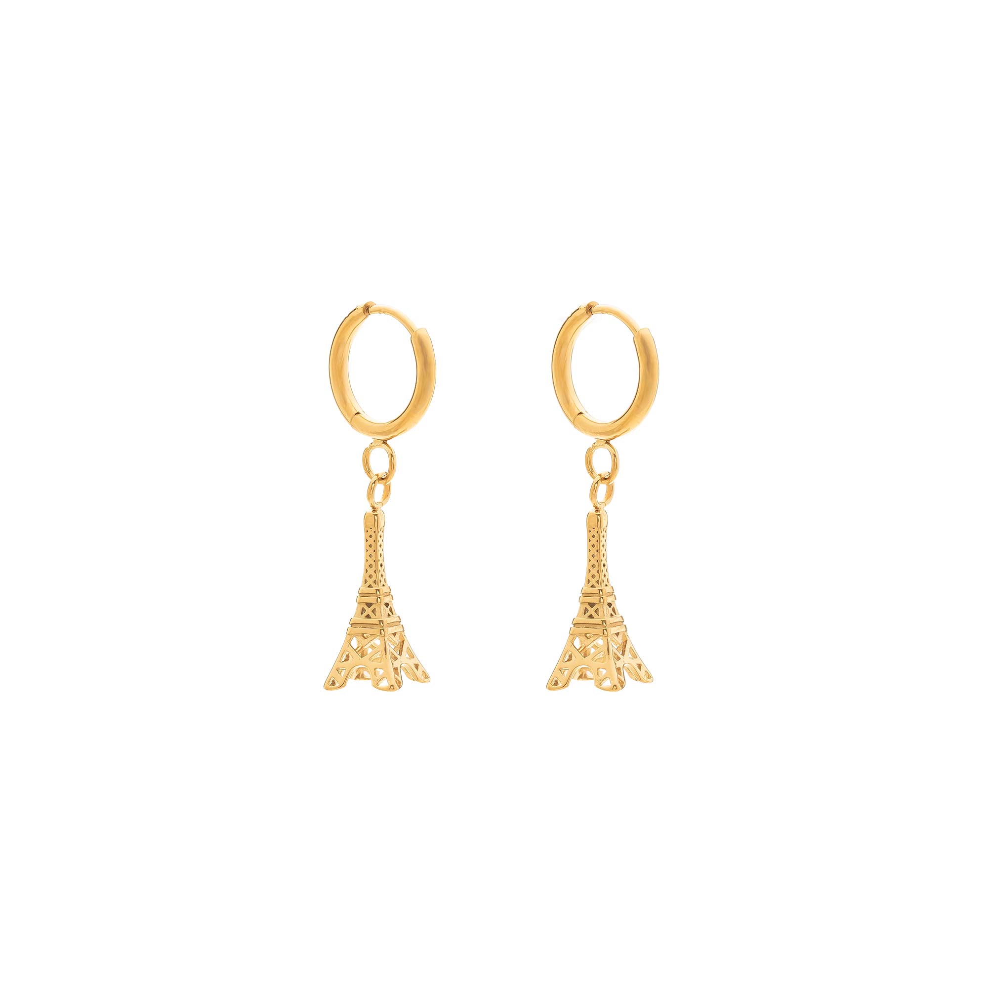 Aros con colgante de torre en diseño detallado. Inspiración viajera y elegante.