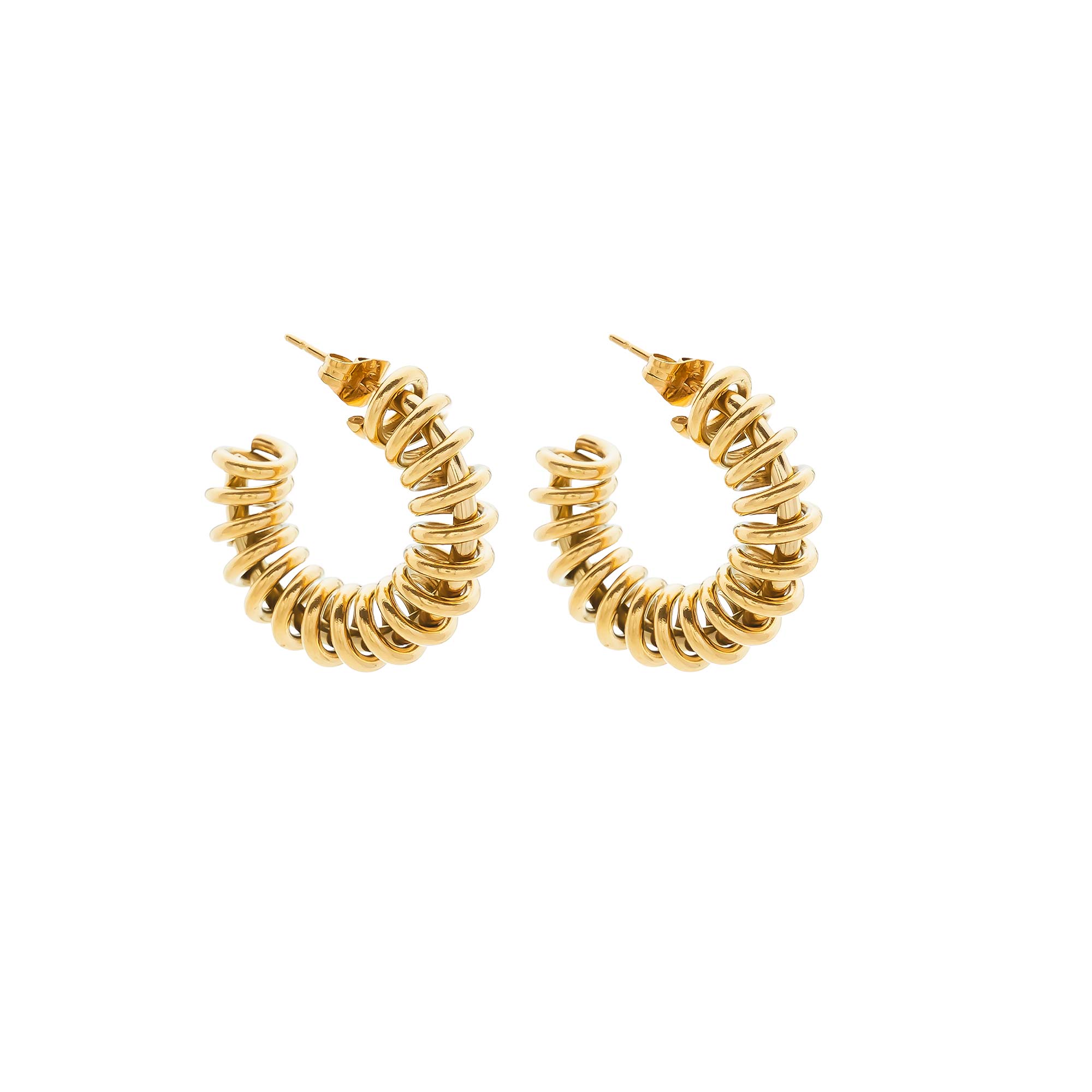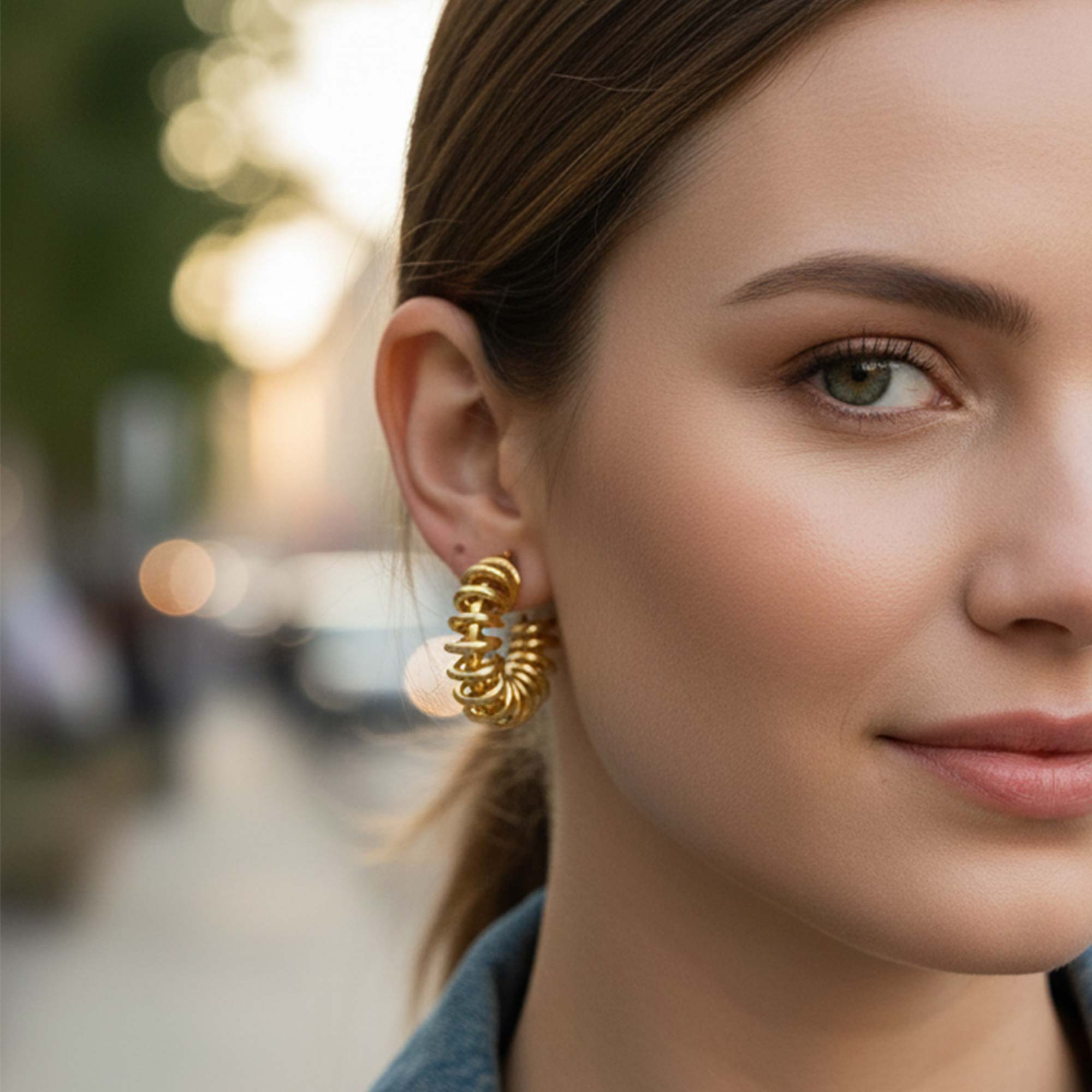 Add to WishlistModernos aros con un diseño de espiral envolvente, que crea una textura visualmente impactante. Cada aro presenta múltiples vueltas que le otorgan volumen y un estilo contemporáneo. Son el accesorio perfecto para quienes buscan una pieza audaz y con carácter, ideal para realzar cualquier look con un toque de distinción.