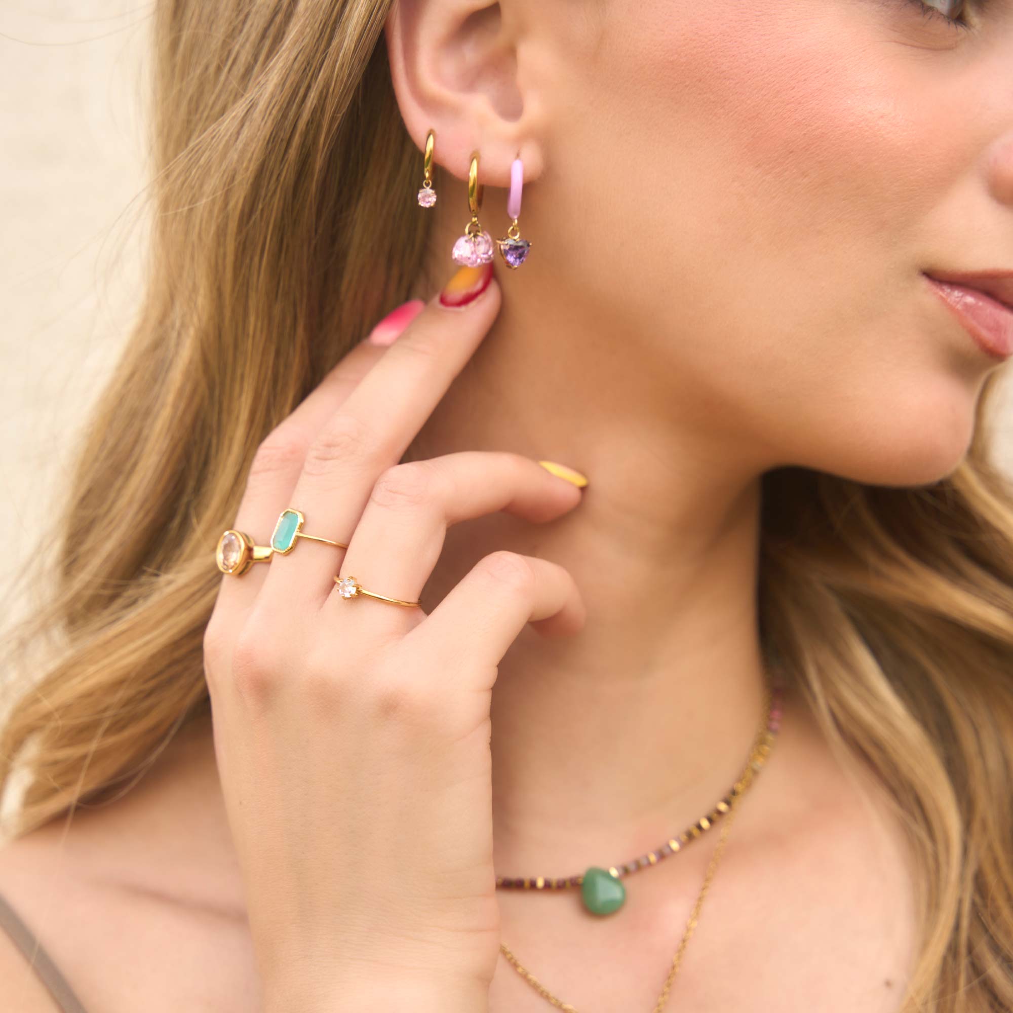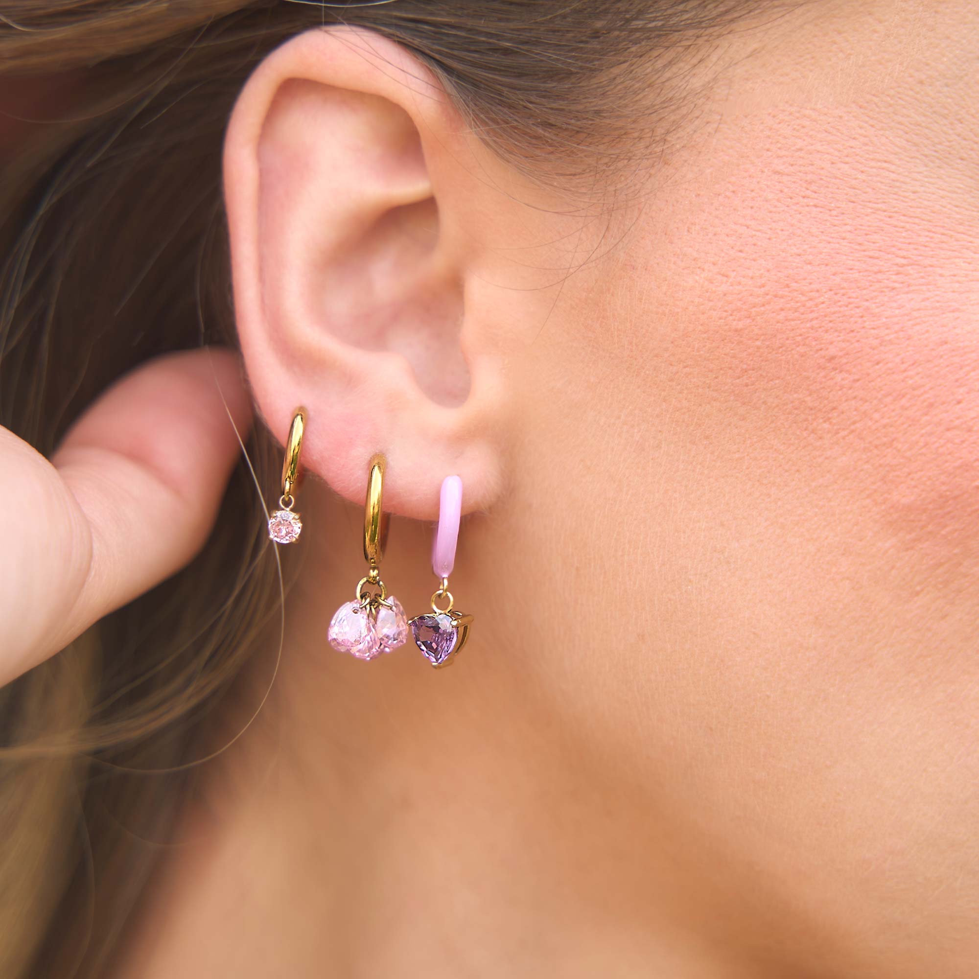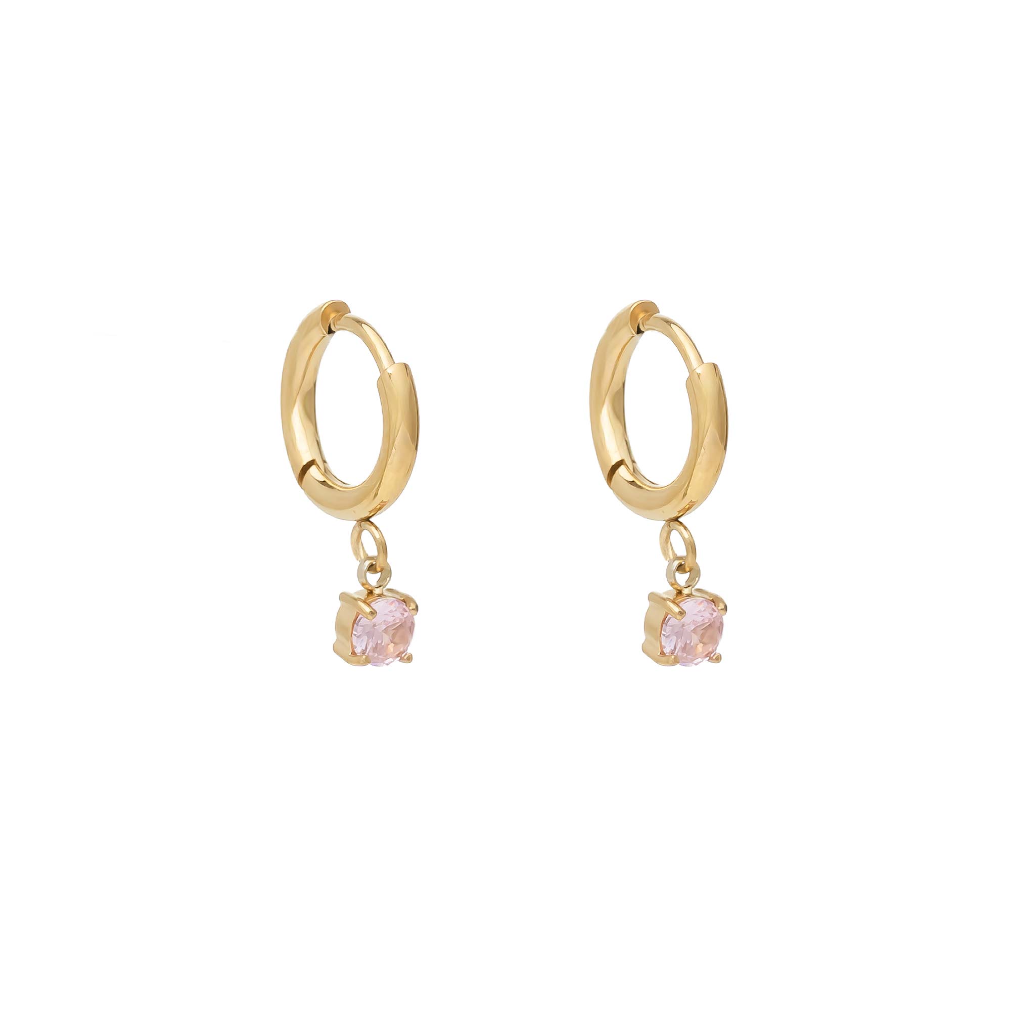 La combinación perfecta de sencillez y encanto. Estos aros con un cristal rosa pastel y un acabado dorado aportan luz y un toque delicado. Ideales para un estilo chic y femenino.