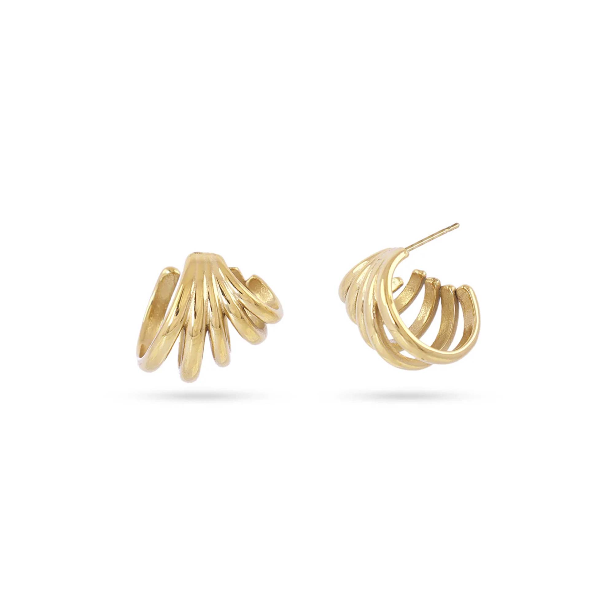Add to WishlistPendientes de diseño curvado con líneas superpuestas. Un estilo moderno y elegante que aporta carácter a cualquier look. Colección Anartxy.