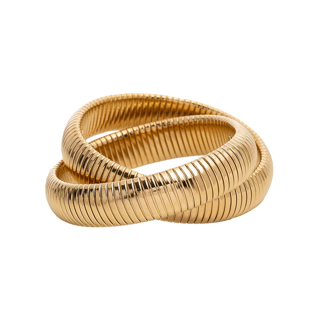 Add to WishlistBrazalete triple completo redondito con textura entrelazando 3 pulseras. Ideal para looks muy cañeros.