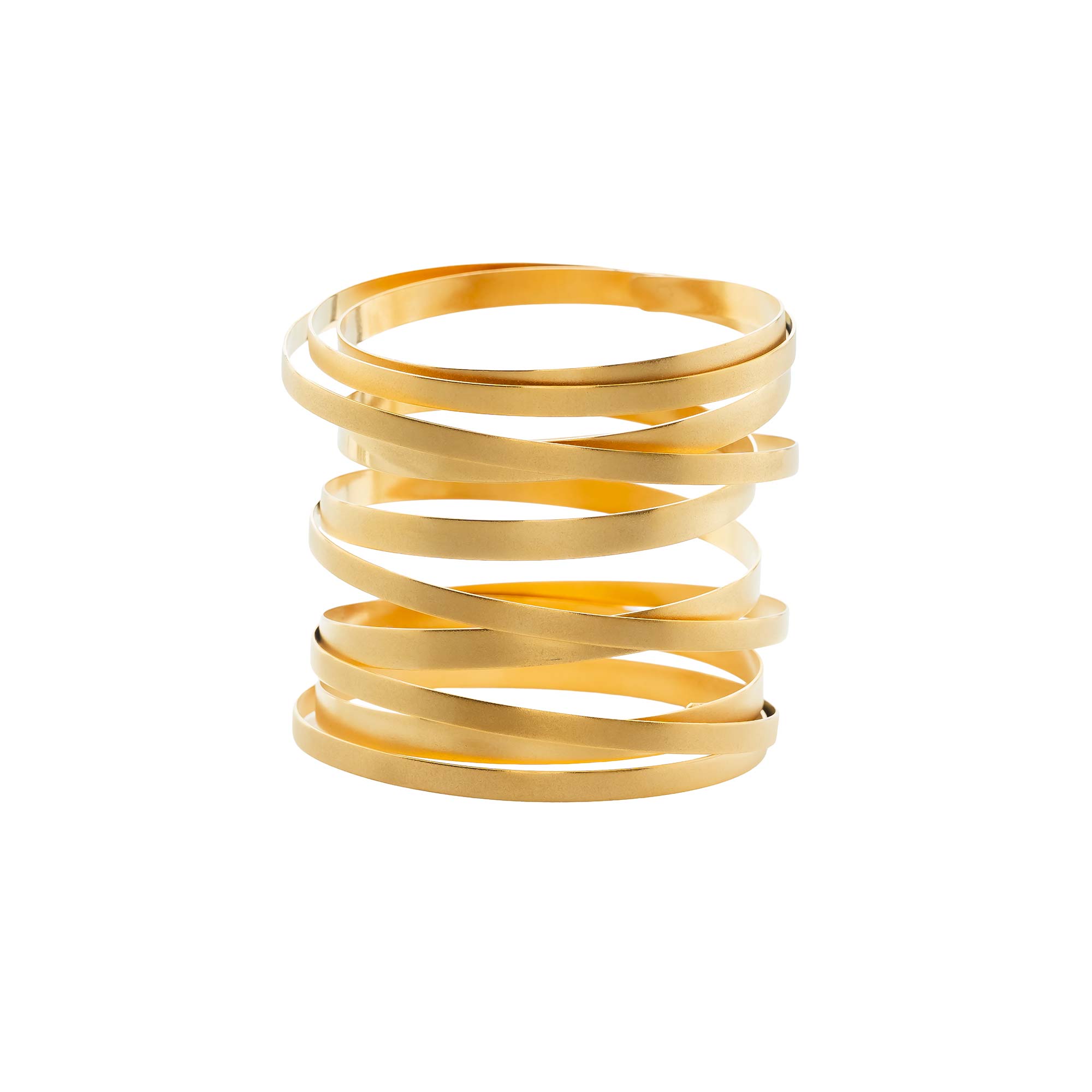 Add to WishlistAdorno ancho para la muñeca, compuesto por múltiples bandas flexibles dispuestas en espiral.