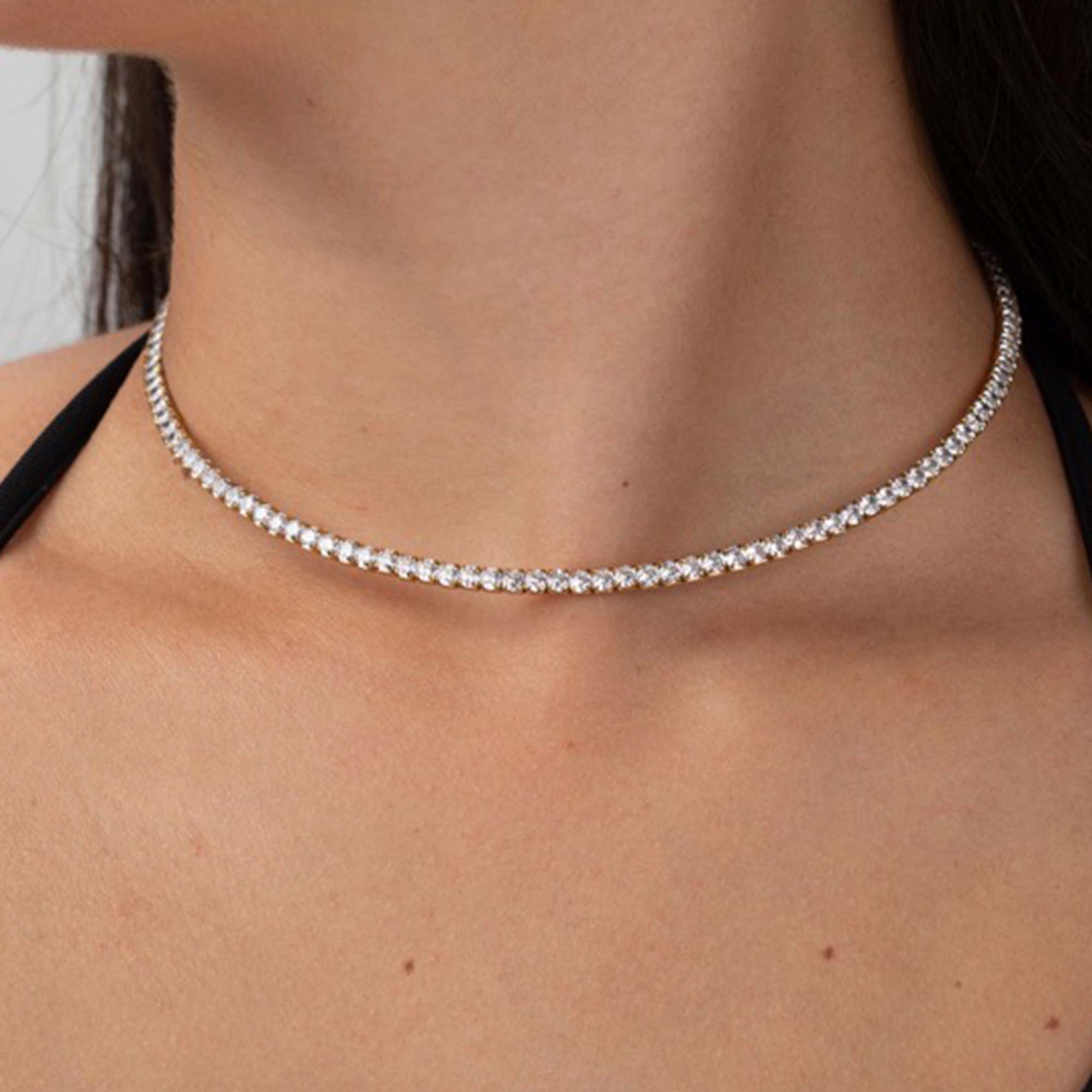 Add to WishlistEste choker rígido presenta un diseño de estilo riviere, completamente rodeado por una línea continua de circonitas brillantes que aportan un resplandor uniforme y sofisticado.