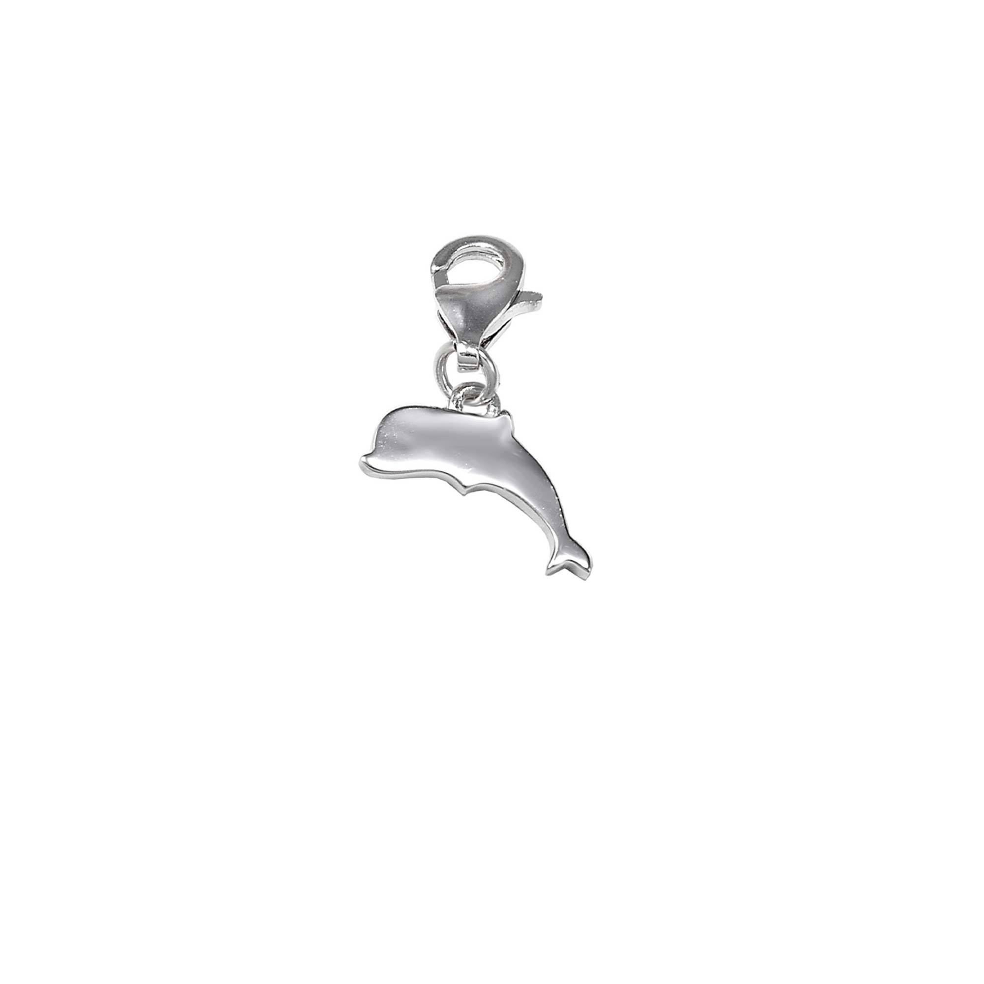 Add to WishlistEncantador charm con un diseño de delfín saltando de acabado liso y pulido. El delfín, con su silueta elegante, está unido a un cierre de langosta, lo que permite engancharlo fácilmente a pulseras, collares o llaveros. Un accesorio delicado y divertido, perfecto para los amantes del mar y para añadir un toque personal a tus joyas.