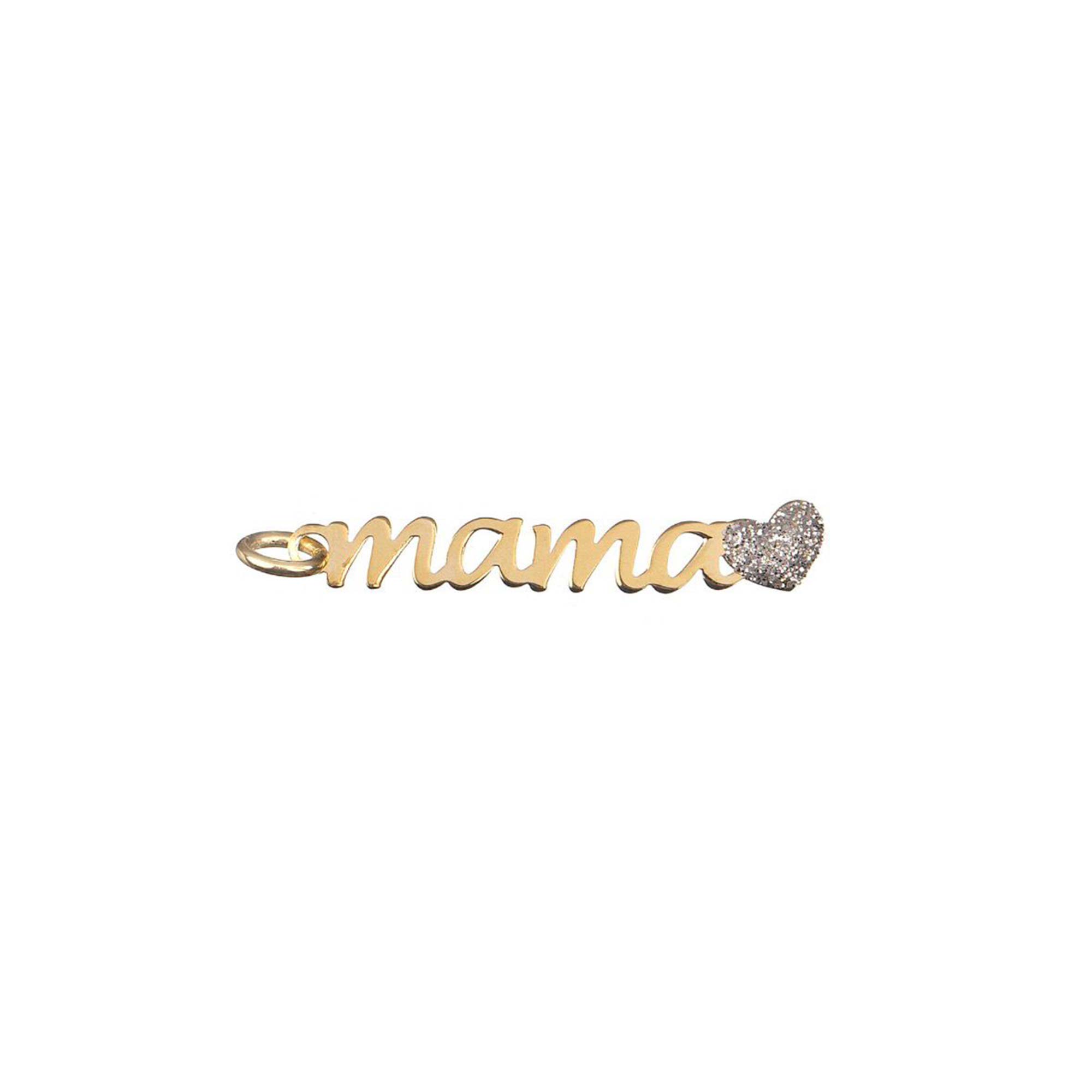 Colgante dorado con la palabra “mamá” y detalle de corazón con circonitas, un diseño elegante y lleno de significado para regalar o llevar a diario.
