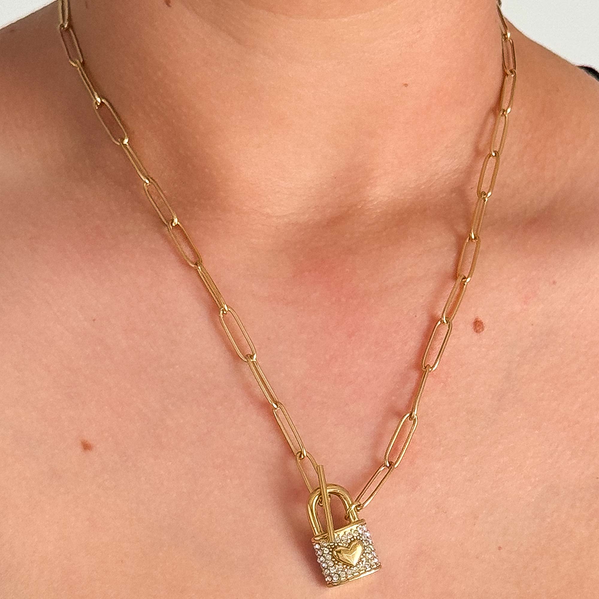 Add to WishlistUn collar que captura el espíritu del amor. El candado, símbolo de protección y compromiso, se reinventa con un corazón de circonitas que añade un toque de brillo y romanticismo. Su cadena de eslabones grandes le da un aire moderno y audaz, perfecto para cualquier estilo.