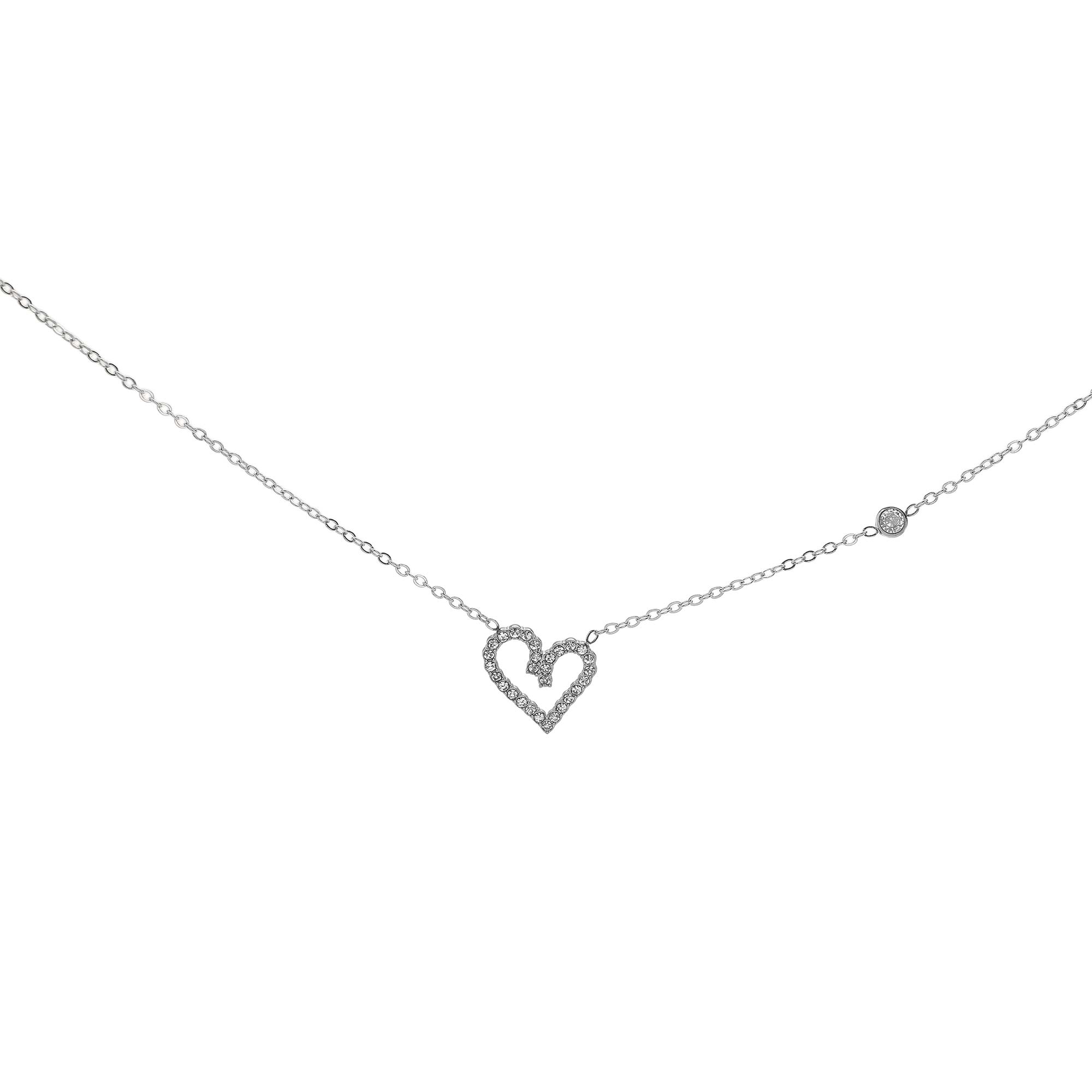 Collar con corazón calado y pequeñas circonitas, delicado y femenino para el día a día.