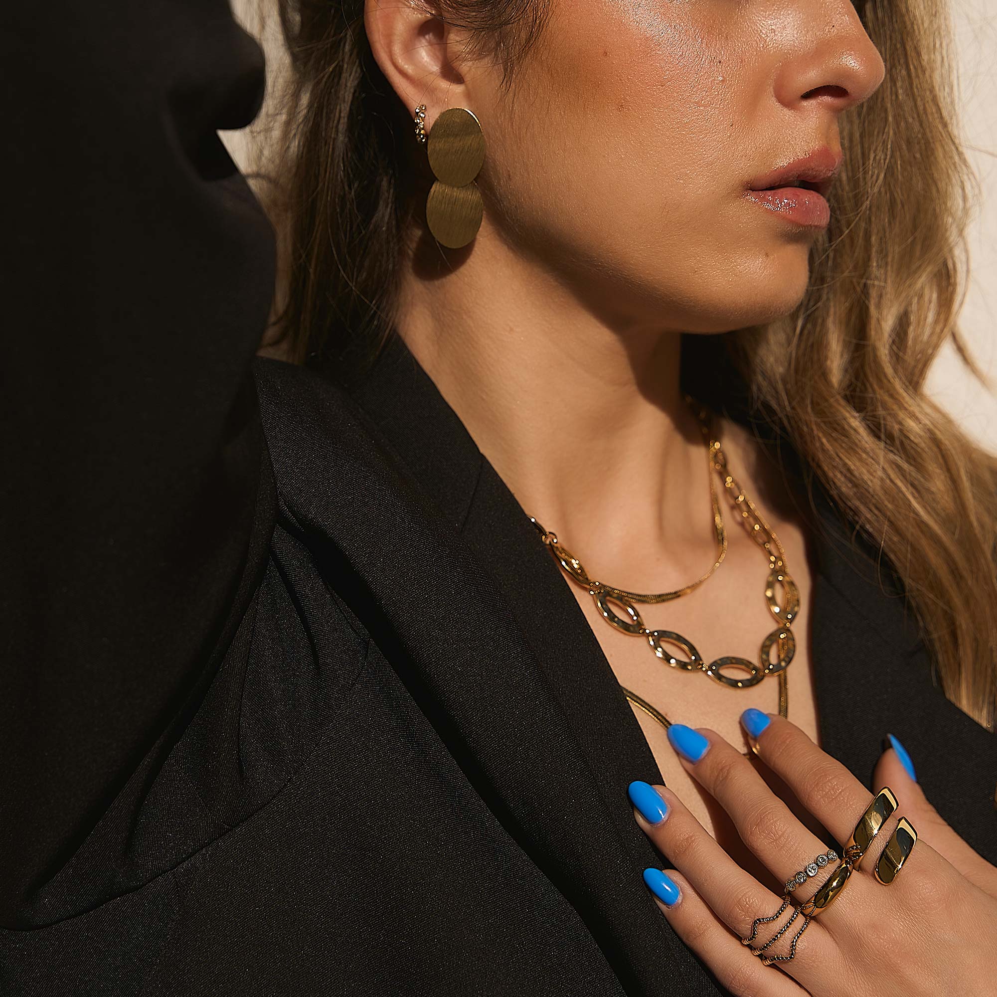 Etiquetas: acero, acero dorado, acero hipoalergenico, acero inoxidable, collar triple, gold, oro