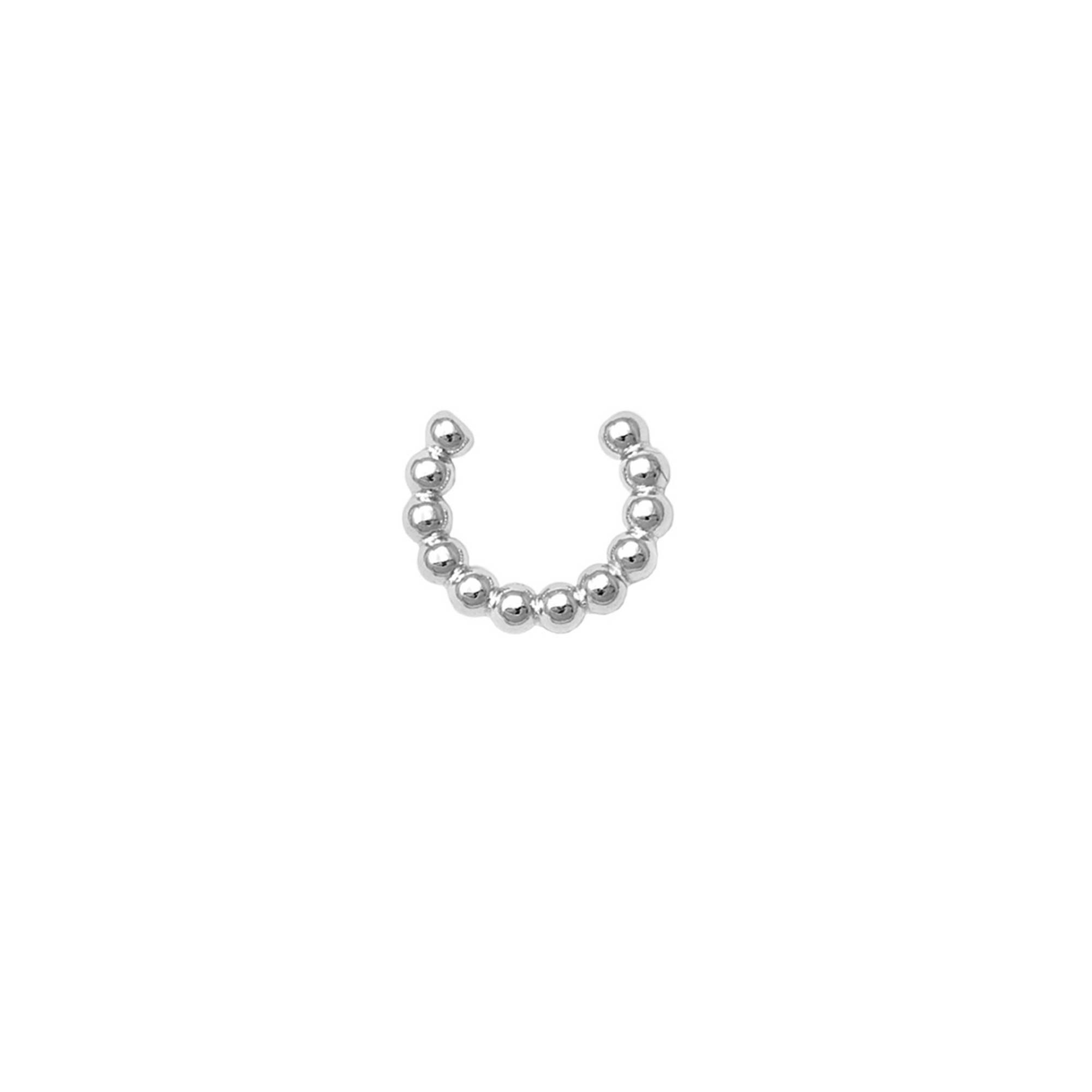 Ear cuff con un diseño minimalista compuesto por una sucesión de pequeñas esferas lisas en relieve.