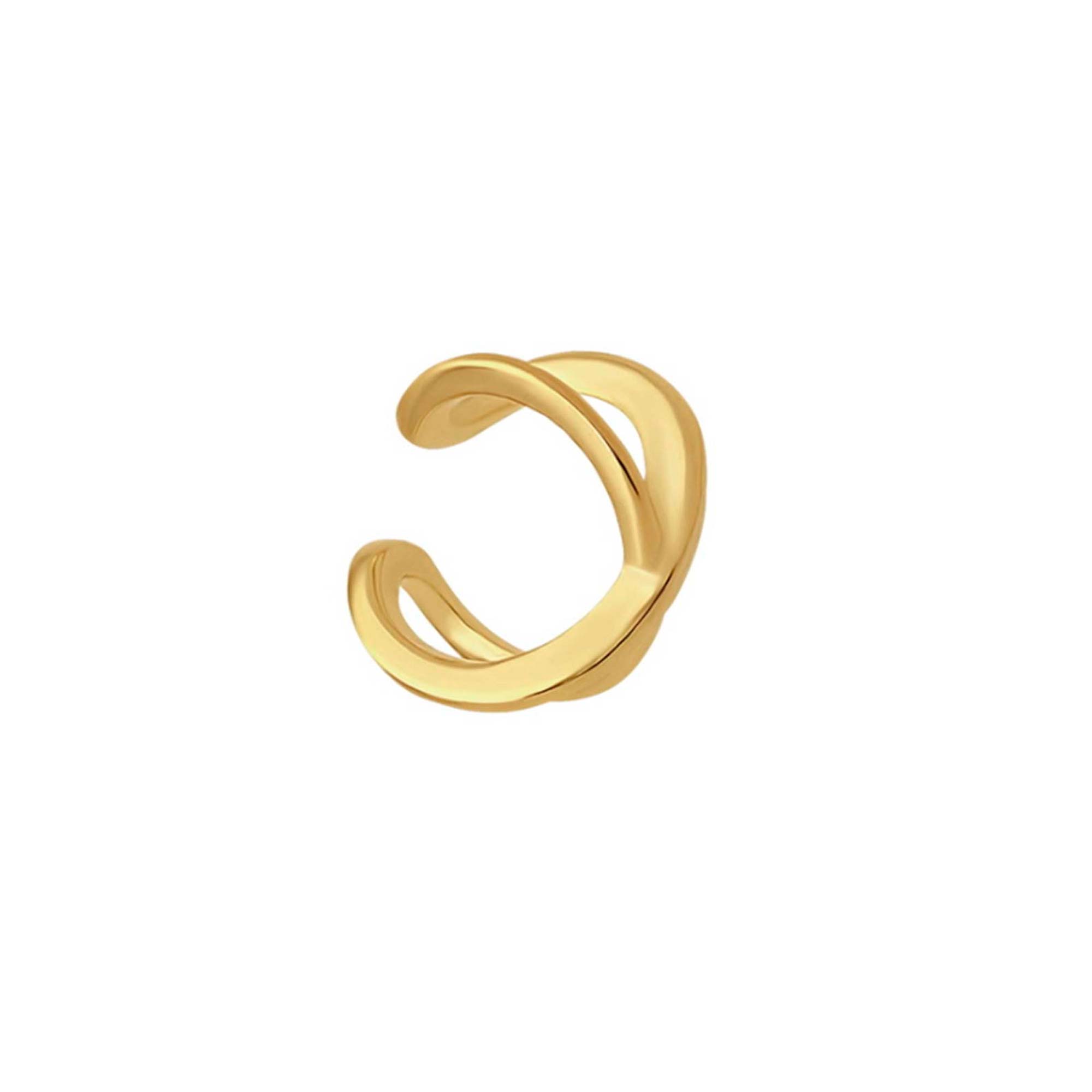 Add to WishlistEar cuff de plata bañado en oro, doble y cruzado su tamaño es ajustable, por lo que se puede utilizar tanto en la zona de la caracola como en zona más exterior.