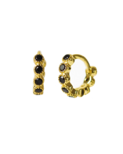 Mini aro con circonitas engastadas negras. Cierre fácil de clip.