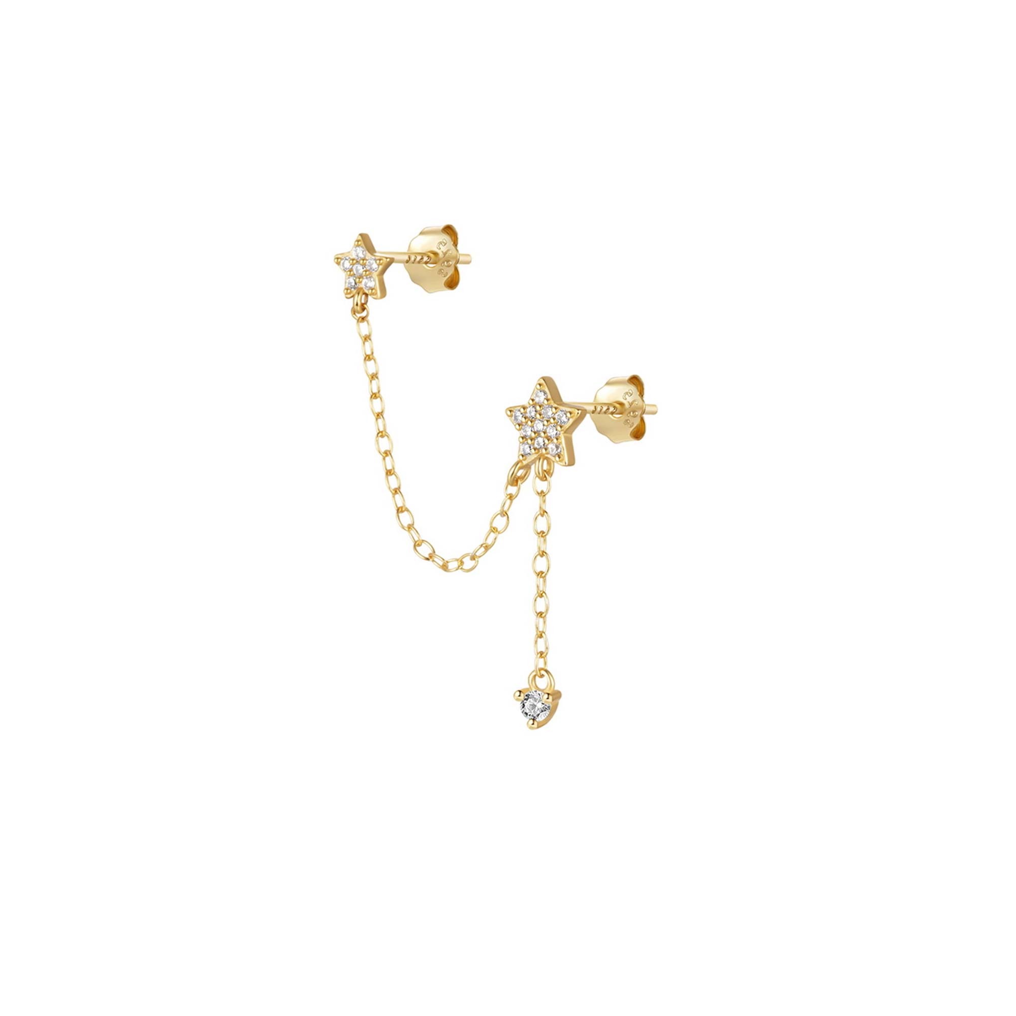 Este pendiente doble de cadena con estrellitas es super combinable.