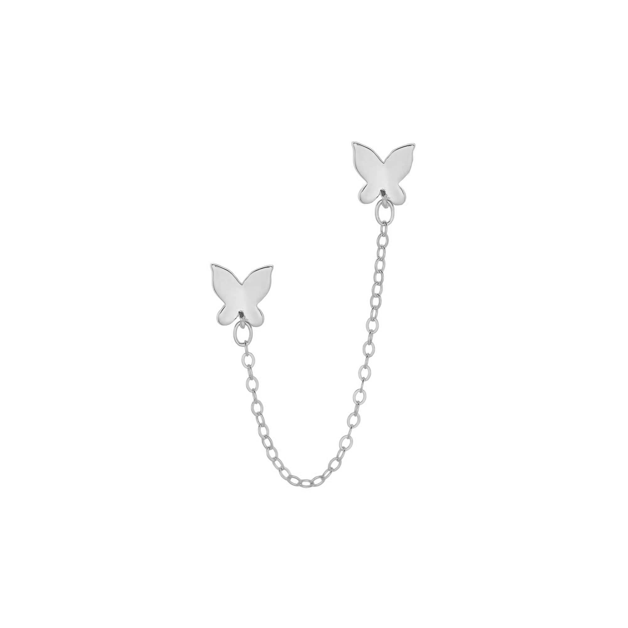 Add to WishlistPendiente diseñado para conectar dos perforaciones. Consiste en dos figuras idénticas de mariposa, de contorno liso y pulido, unidas por una cadena de eslabones simples.