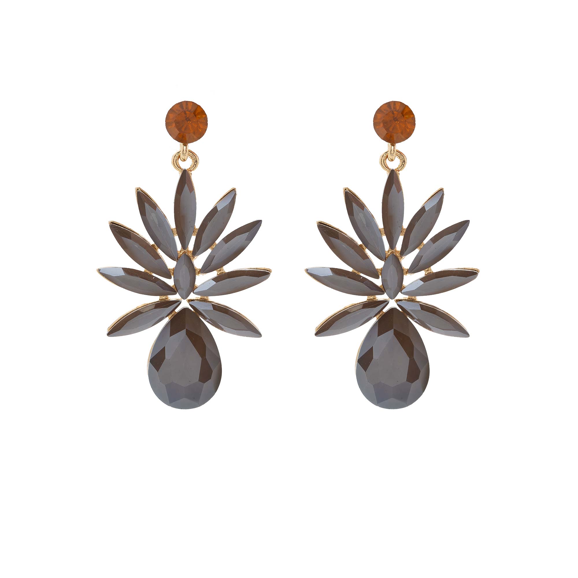 Add to WishlistPendientes de diseño maximalista con una composición radial de piedras en forma de gota y marquesa. La pieza presenta una piedra circular en la base de la que pende un motivo floral geométrico y una gran lágrima central facetada.