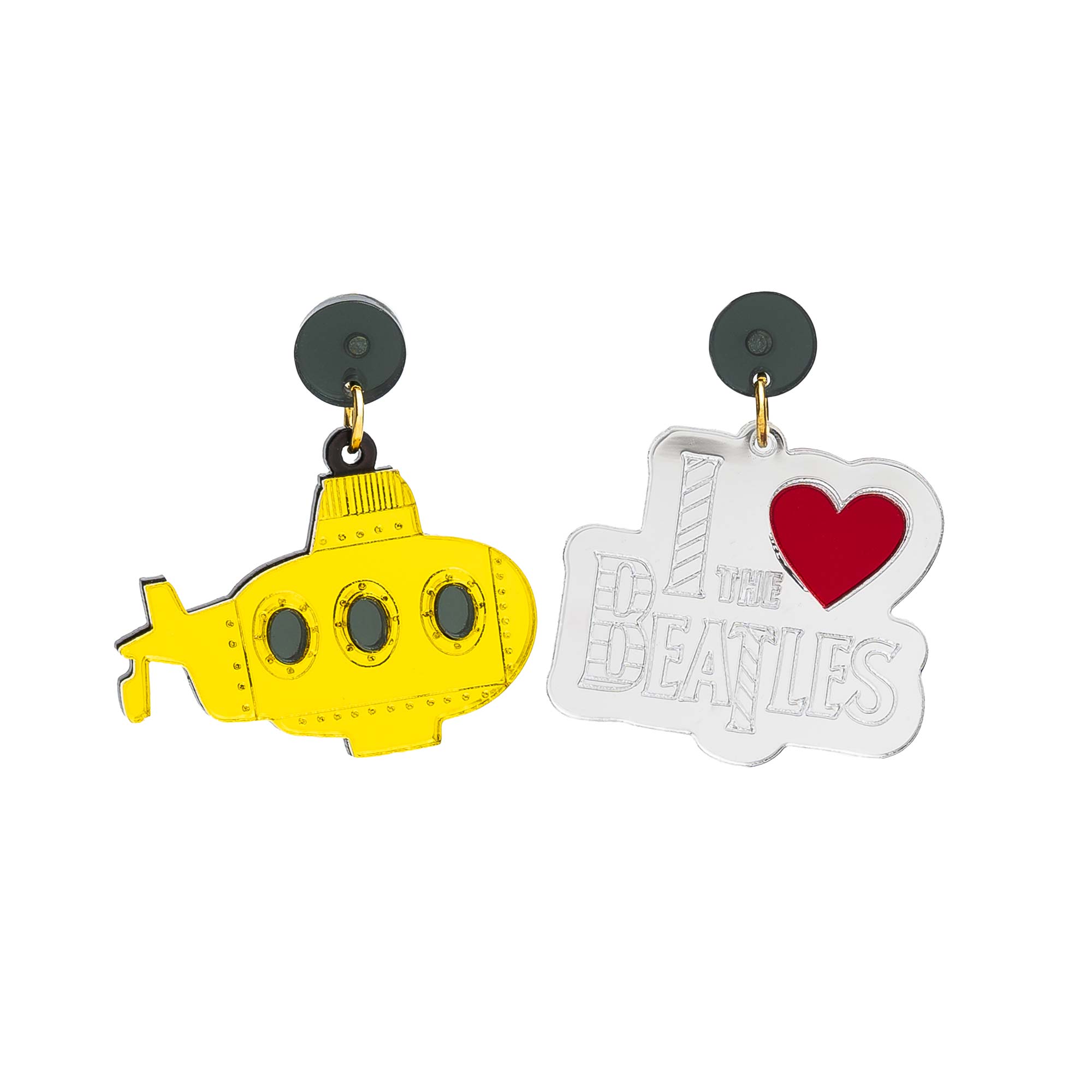Pendientes en honor a los Beatles y su canción yellow submarine en acabado metacrilato.