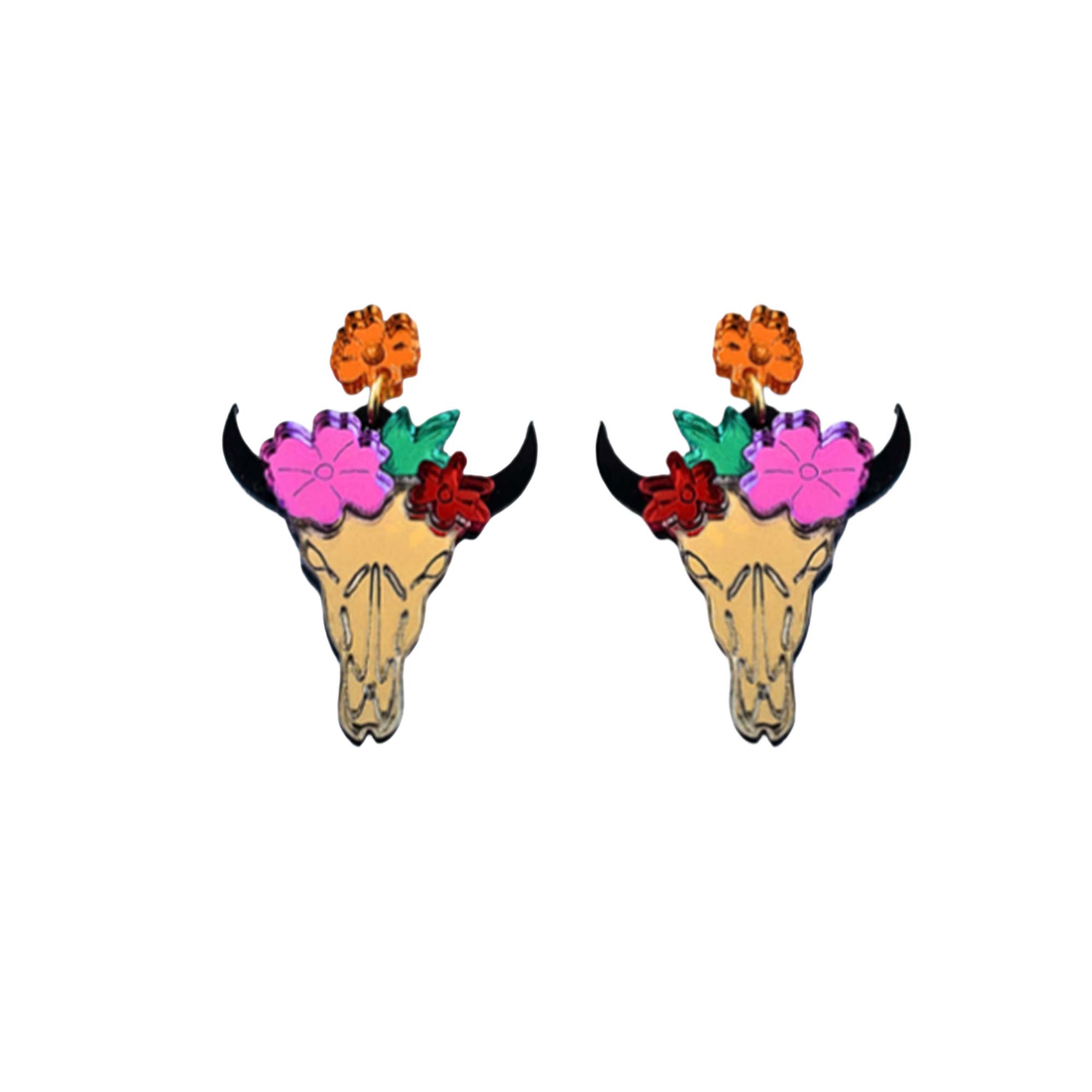 Pendientes Cráneo Búfalo Flores METACRILATO