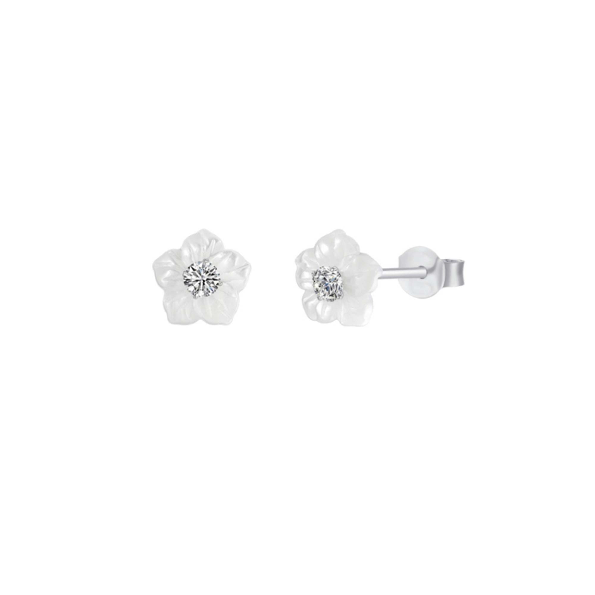 Pendientes en forma de flor de nácar con detalle de circonita, delicados y elegantes para un toque sutil.