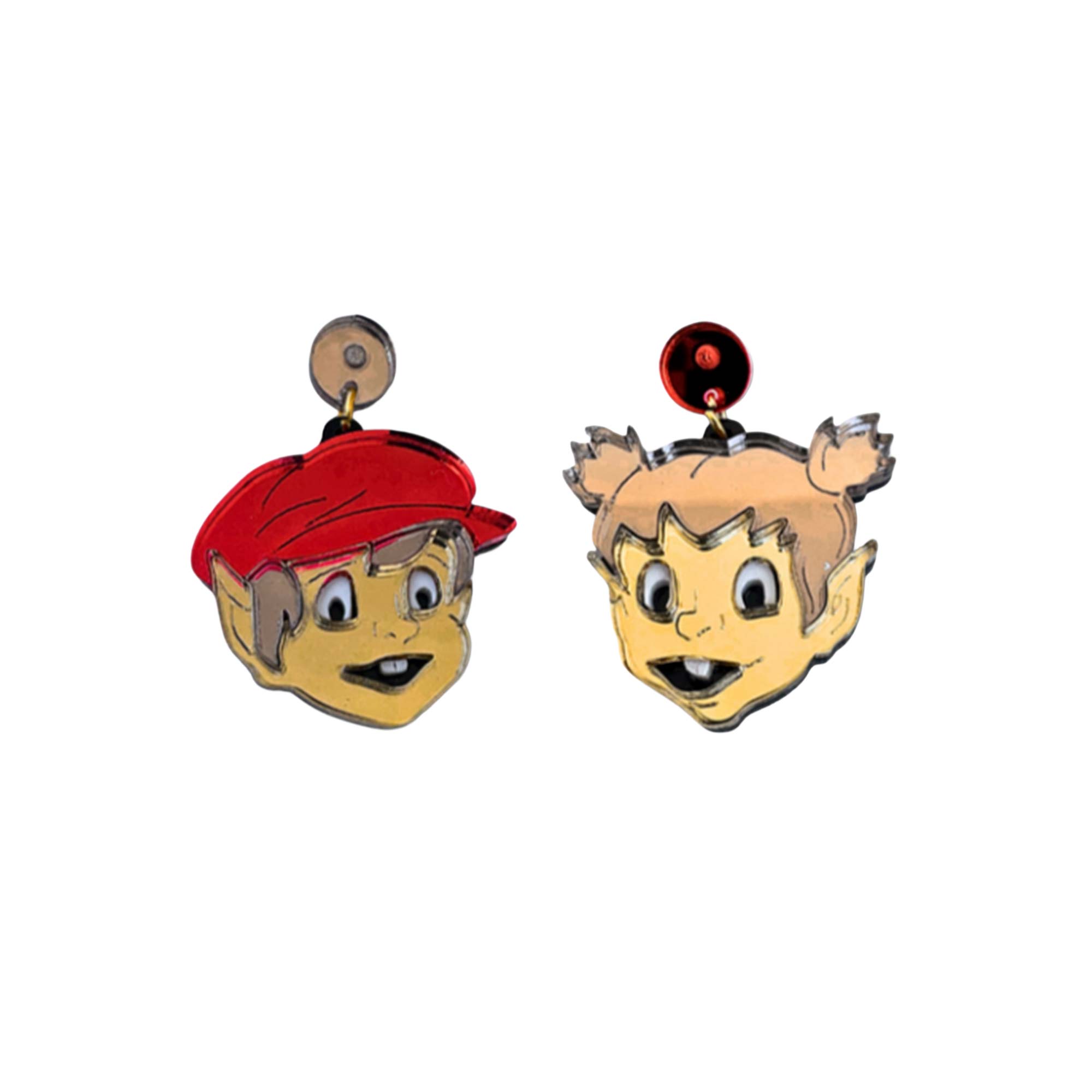 Add to WishlistRevive la magia de la infancia con este par de pendientes desparejados inspirados en los adorables protagonistas de la serie Los Diminutos. Un accesorio divertido y lleno de nostalgia que te hará sonreír.