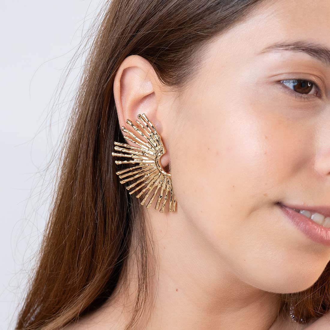Pendientes en forma de medio sol con acabado martilleado. Cierre de presión.