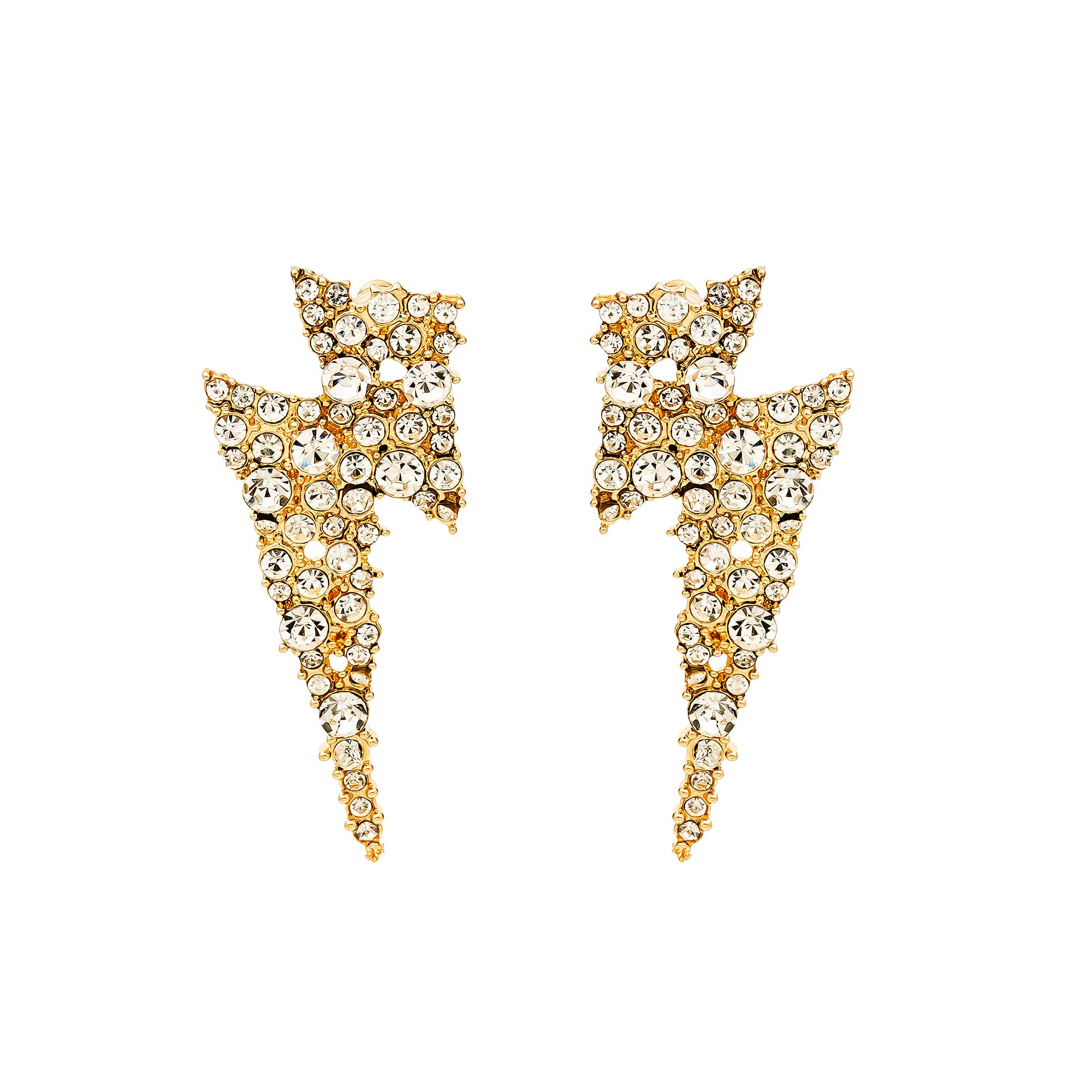 Estos Pendientes tienen forma de Rayo decorado con circonitas blancas. Cierre de presión.