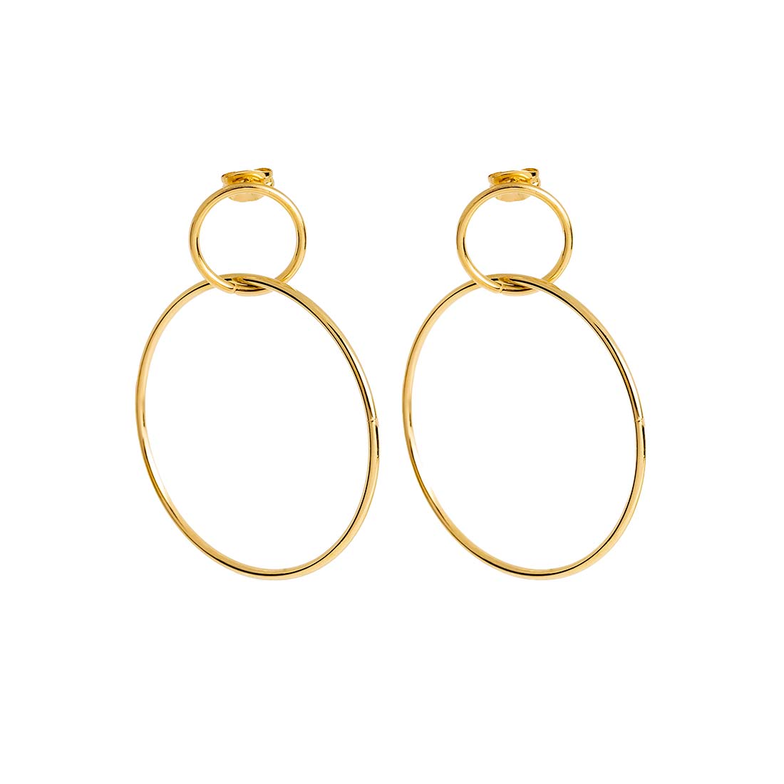Pendientes con forma de dos círculos unidos. Uno más pequeño que otro.