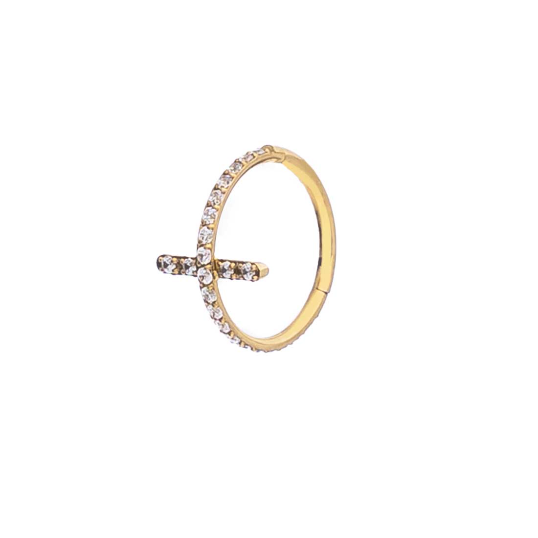 Add to WishlistPiercing daith de aro con cruz y circonitas. Cierre fácil de clip.