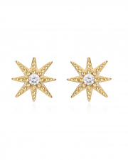 Pendientes pequeños con forma de estrellas decorados con circonitas blancas. Cierre a presión.