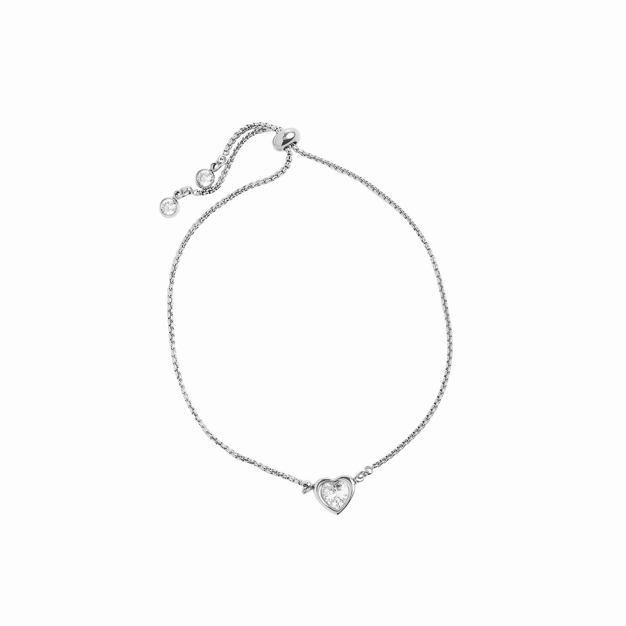 Pulsera ajustable de cadena fina con dije central en forma de corazón con cristal brillante. Elegante y delicada, ideal para un look romántico o para regalar en una ocasión especial. Cierre deslizable para un ajuste perfecto.