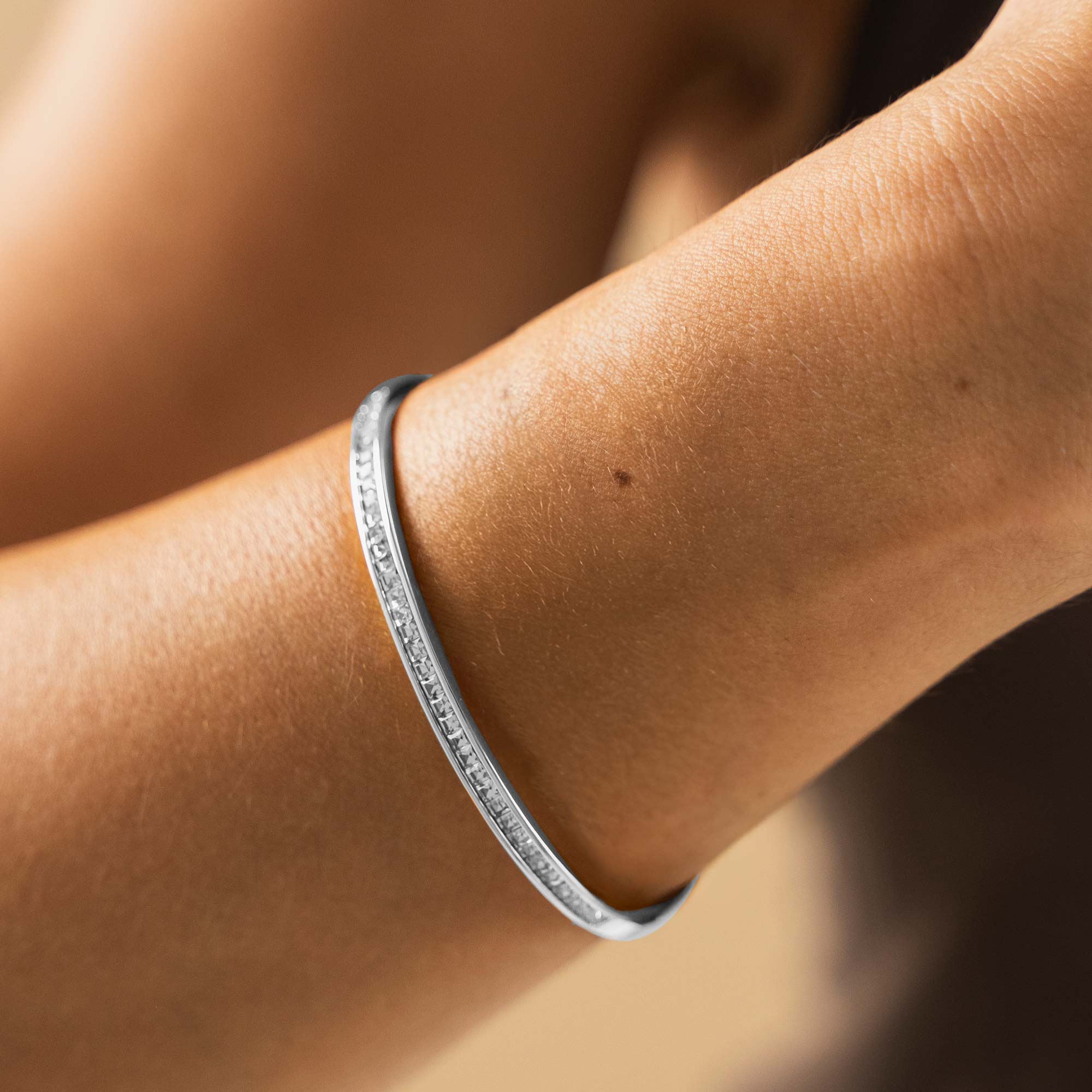Add to WishlistBrazalete rígido de diseño cerrado y minimalista que incorpora una hilera continua de piedras de talla cuadrada incrustadas a lo largo de su superficie superior.