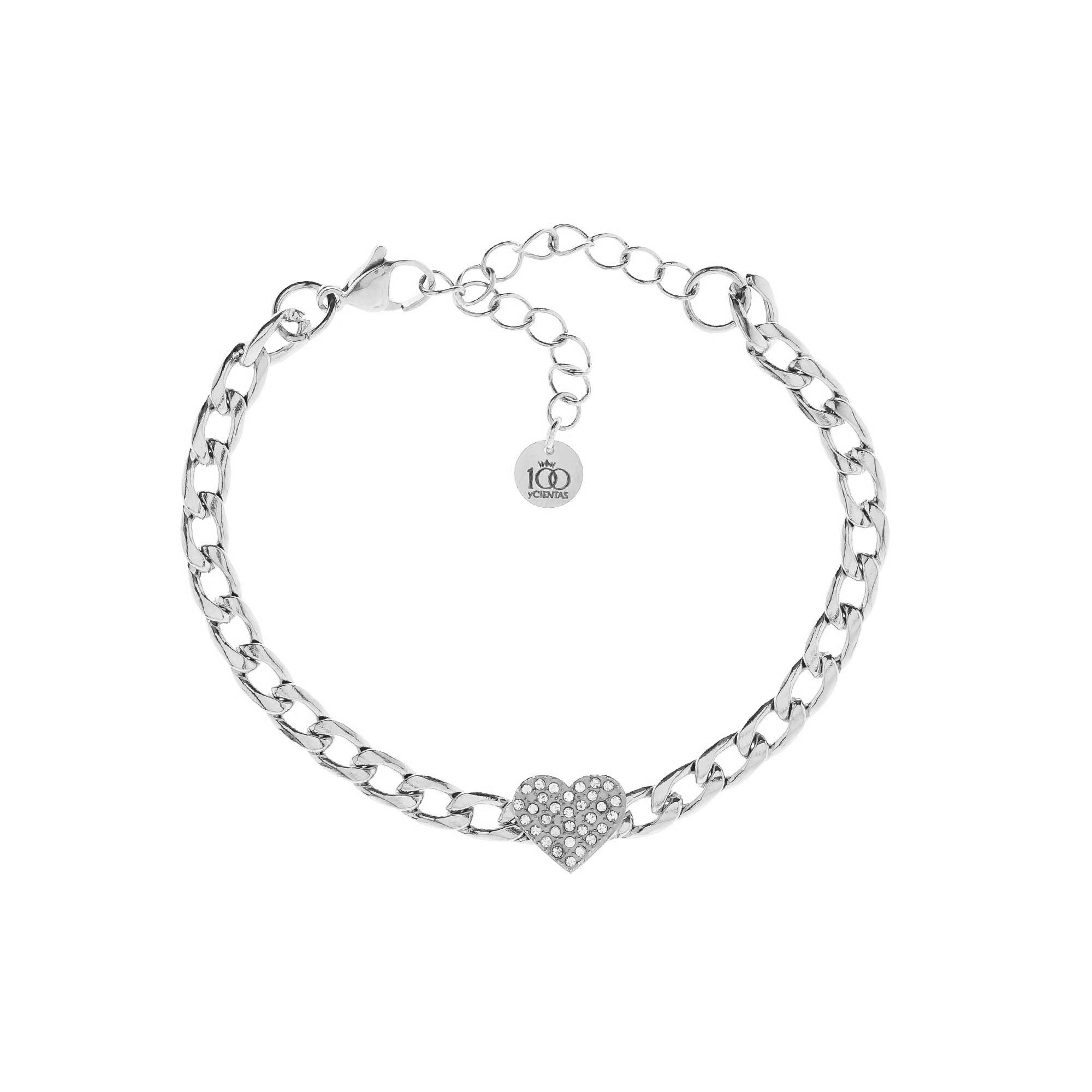 Add to WishlistGlamurosa pulsera de cadena tipo barbada, con eslabones robustos y un acabado dorado brillante. En el centro, un colgante en forma de corazón está completamente adornado con pequeñas circonitas blancas, que le confieren un brillo deslumbrante. Cuenta con un cierre de langosta ajustable y un pequeño colgante redondo grabado. Un accesorio audaz y romántico, perfecto para realzar tu estilo.