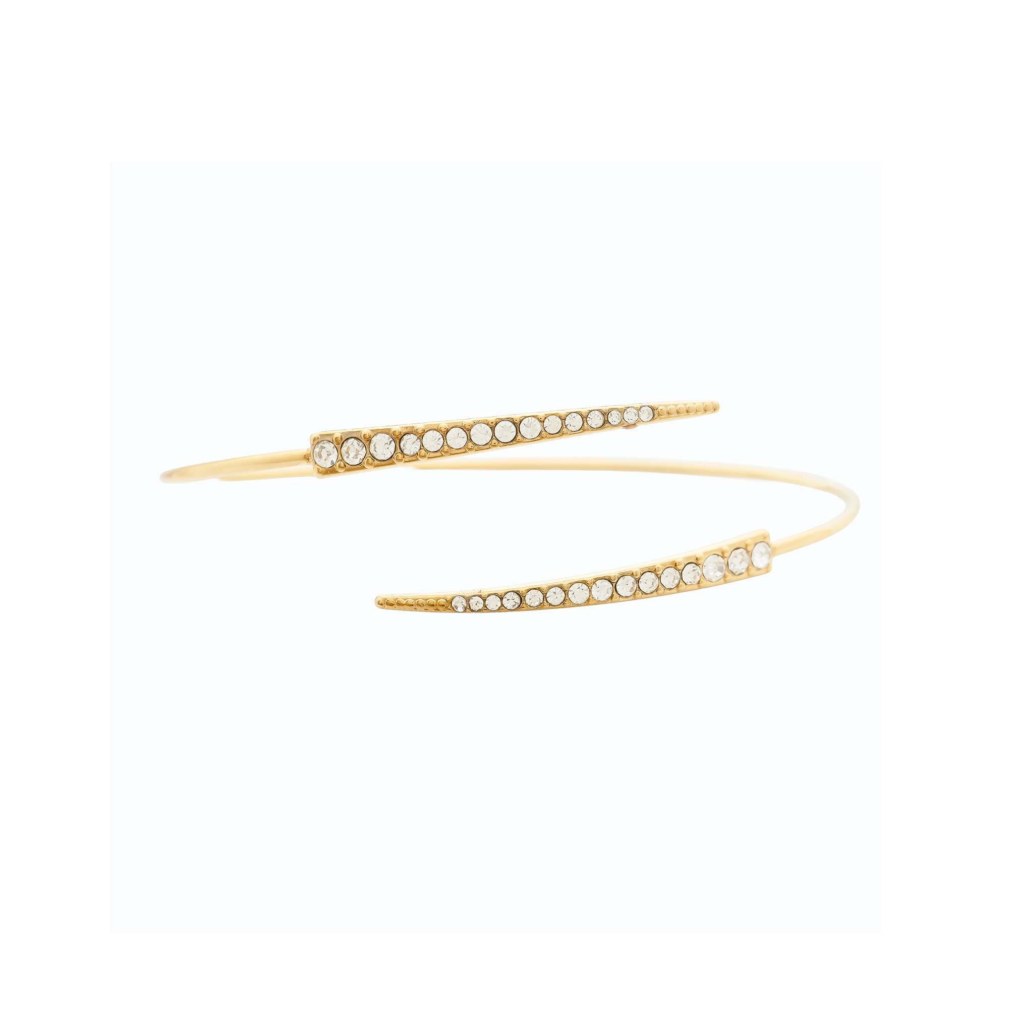 Add to WishlistBrazalete rígido de diseño abierto con extremos terminados en barras finas decoradas con una hilera de piedras brillantes.