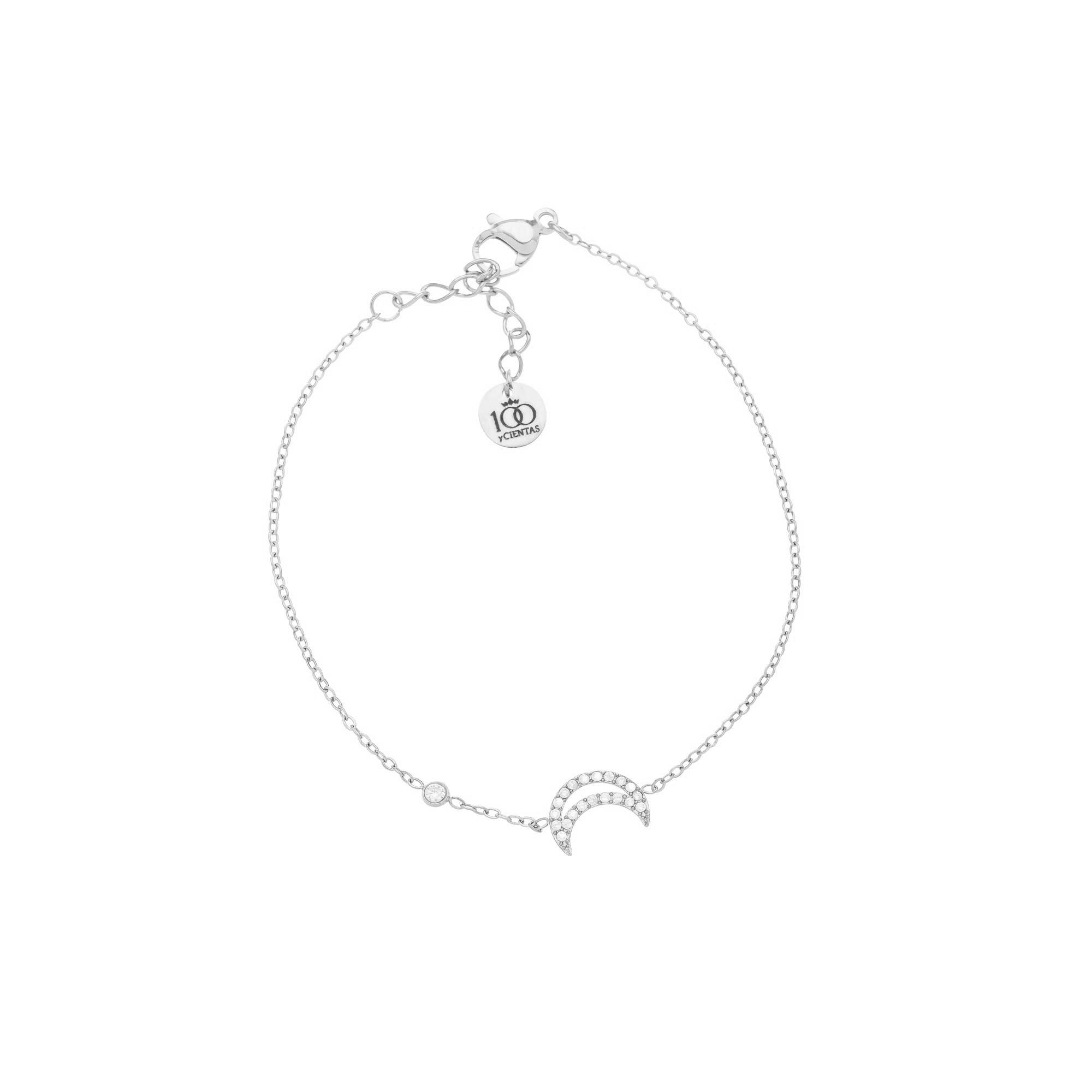 Pulsera fina con motivo de luna creciente adornado con circonitas y un pequeño detalle brillante en la cadena.