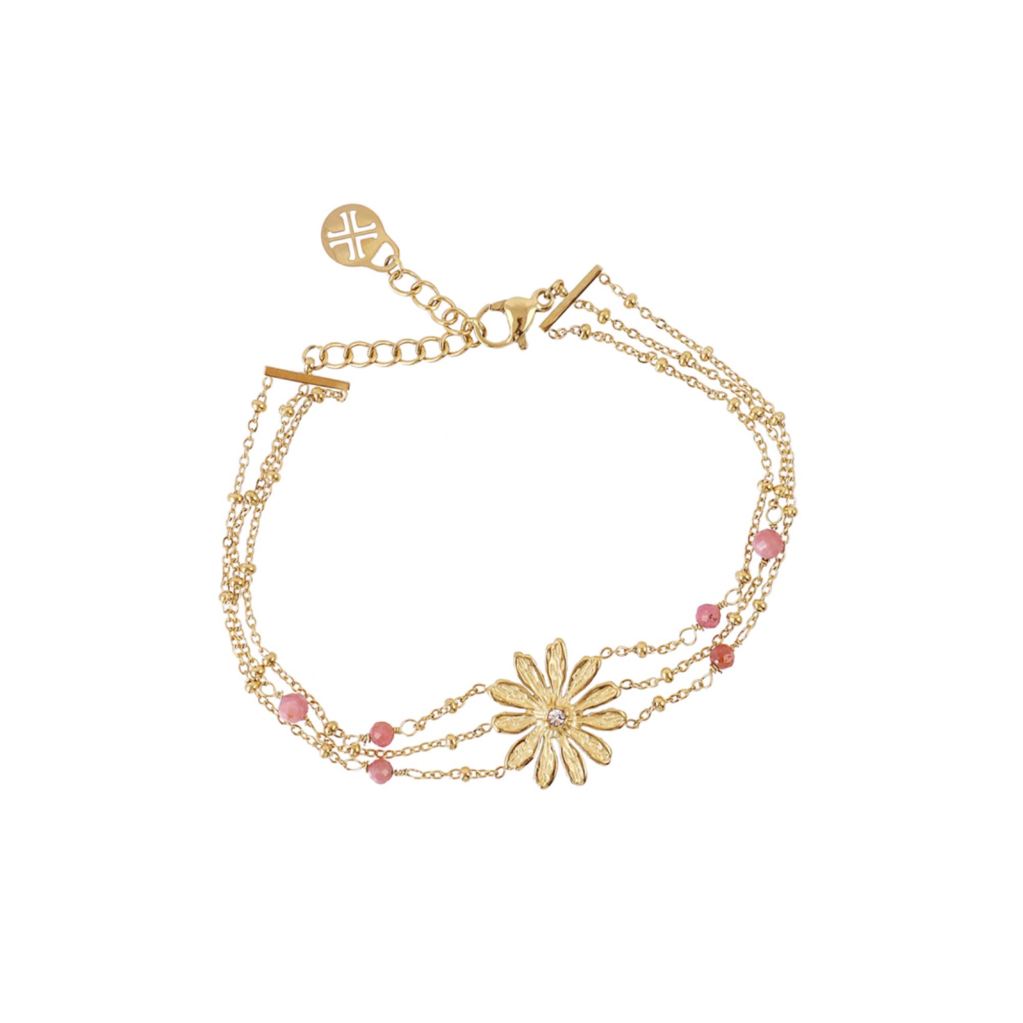 Add to WishlistPulsera de múltiples cadenas con cuentas y detalle central de margarita. Un diseño delicado y femenino. Colección Anartxy.