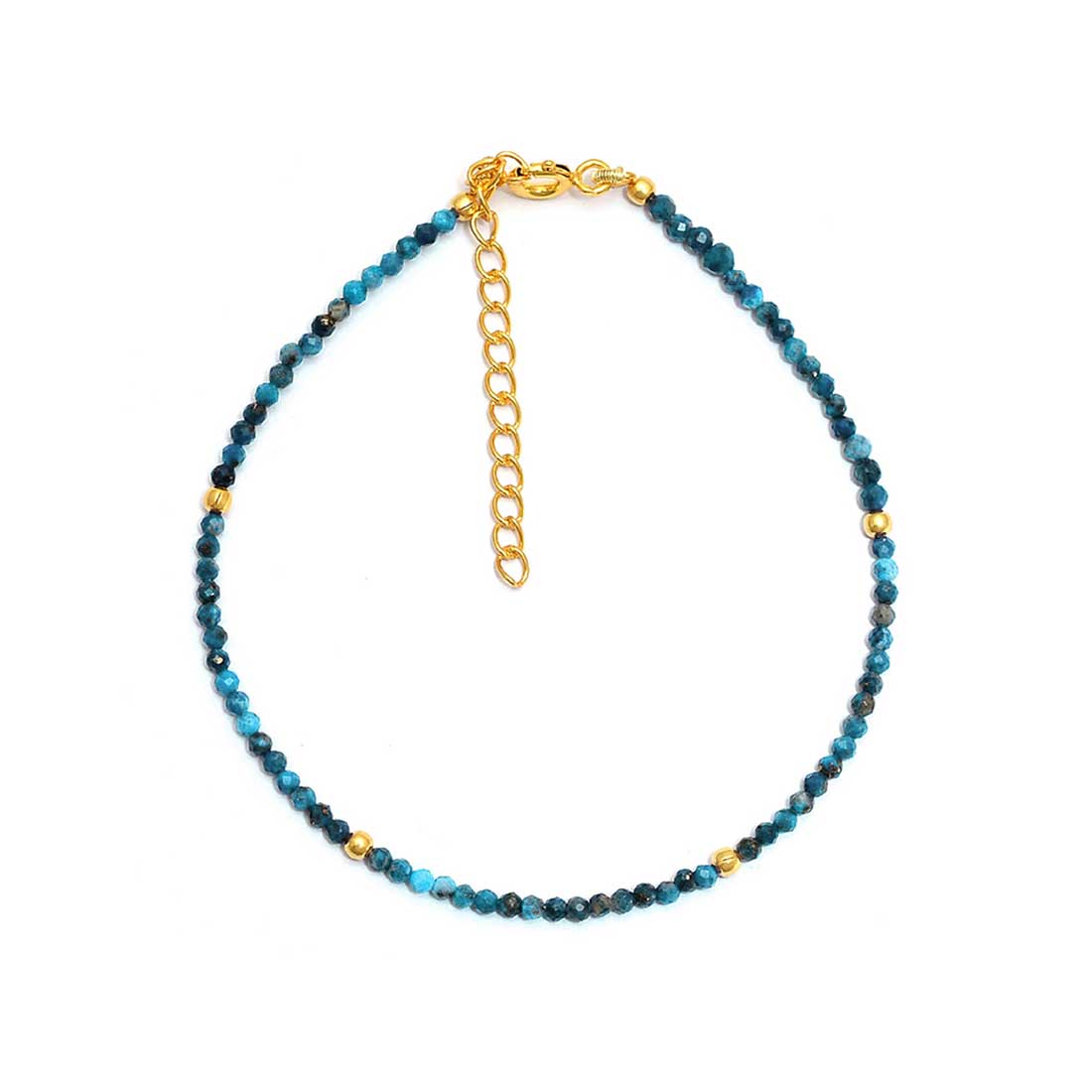 Pulsera de piedras naturales neón apatita de 2mm, en tonos azules.